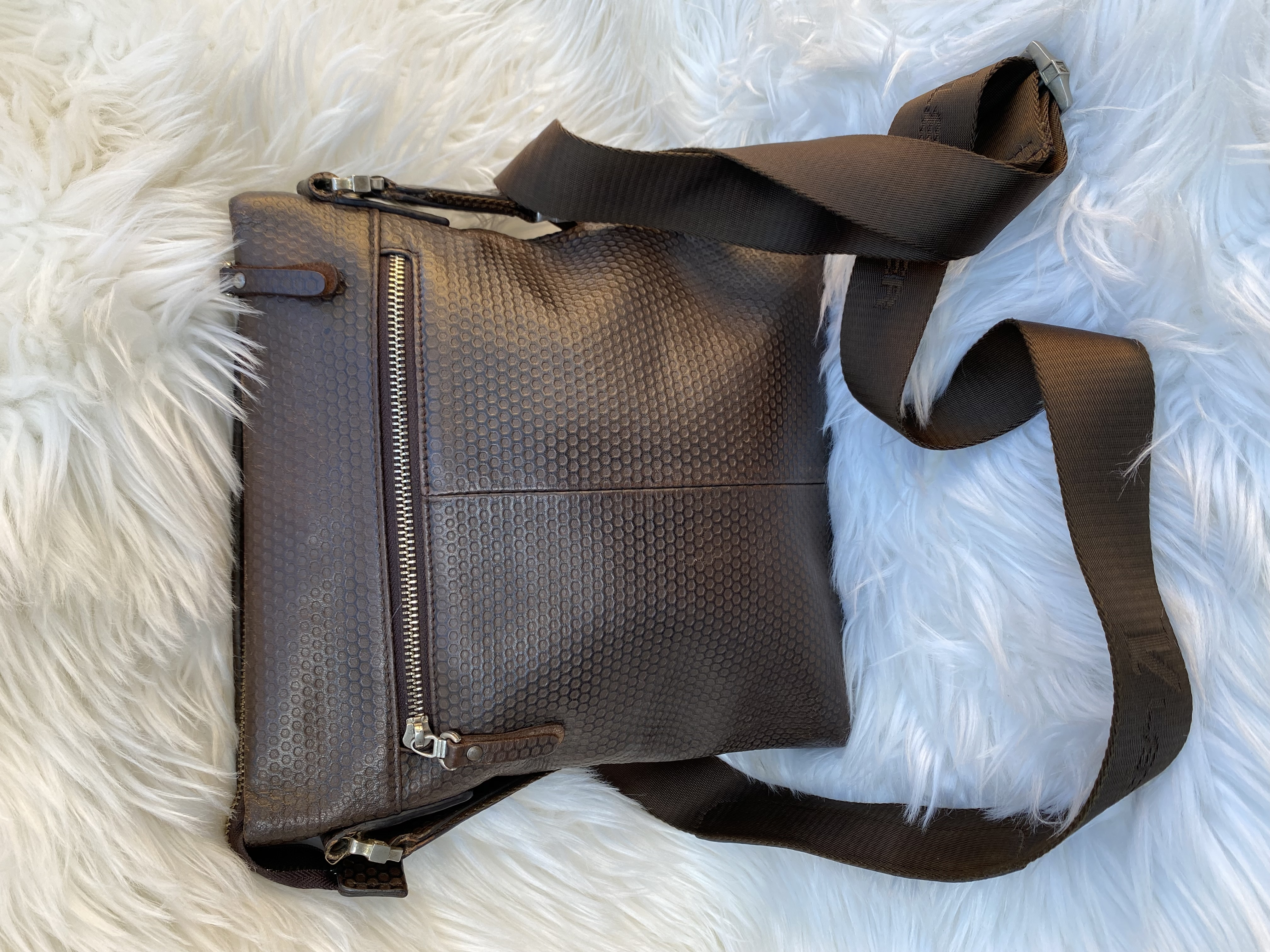 Genuine soft leather men’s sling bag. Medium size, good condition. Brown colour. L27cm..H29cm..W6cm.