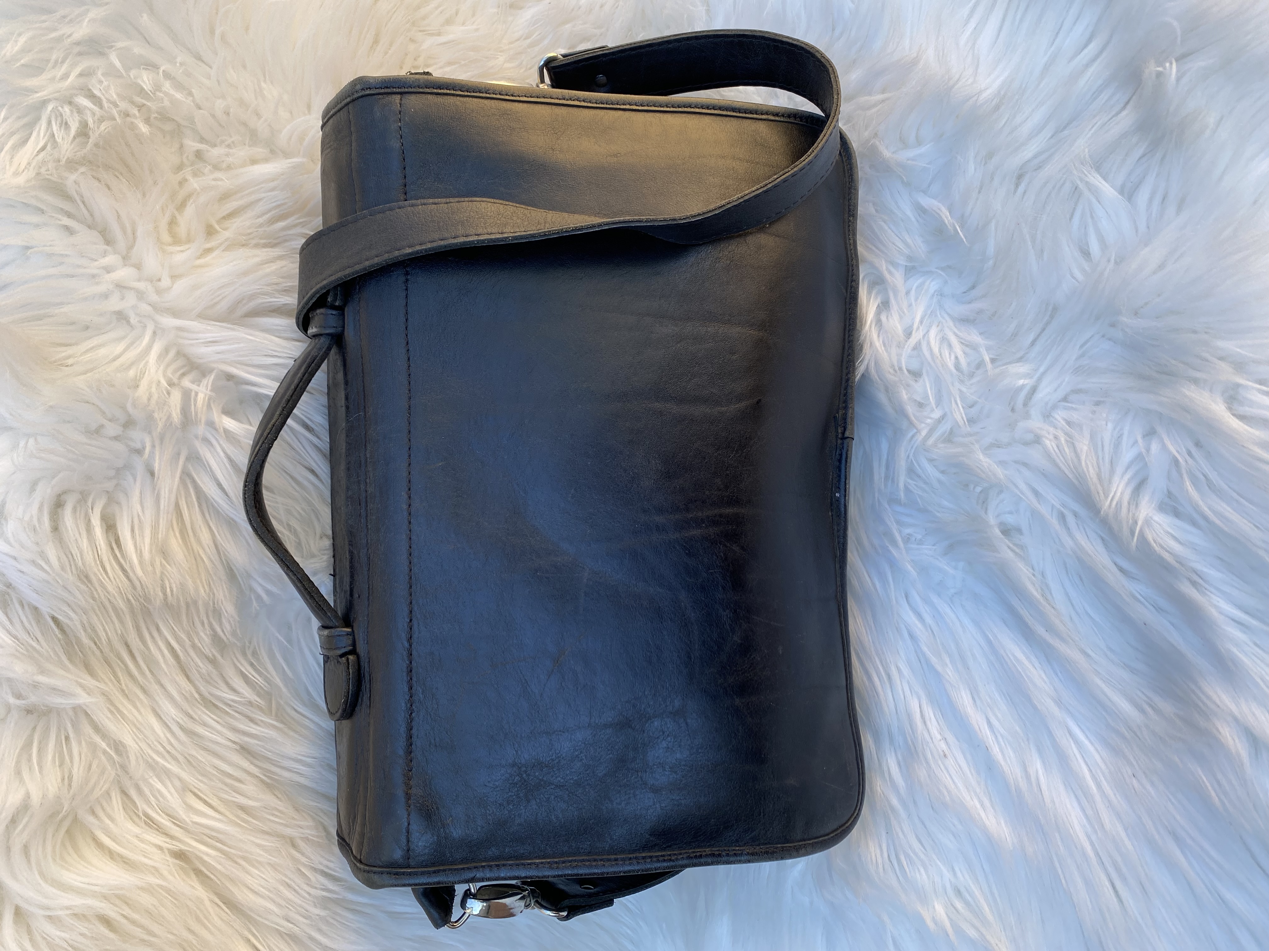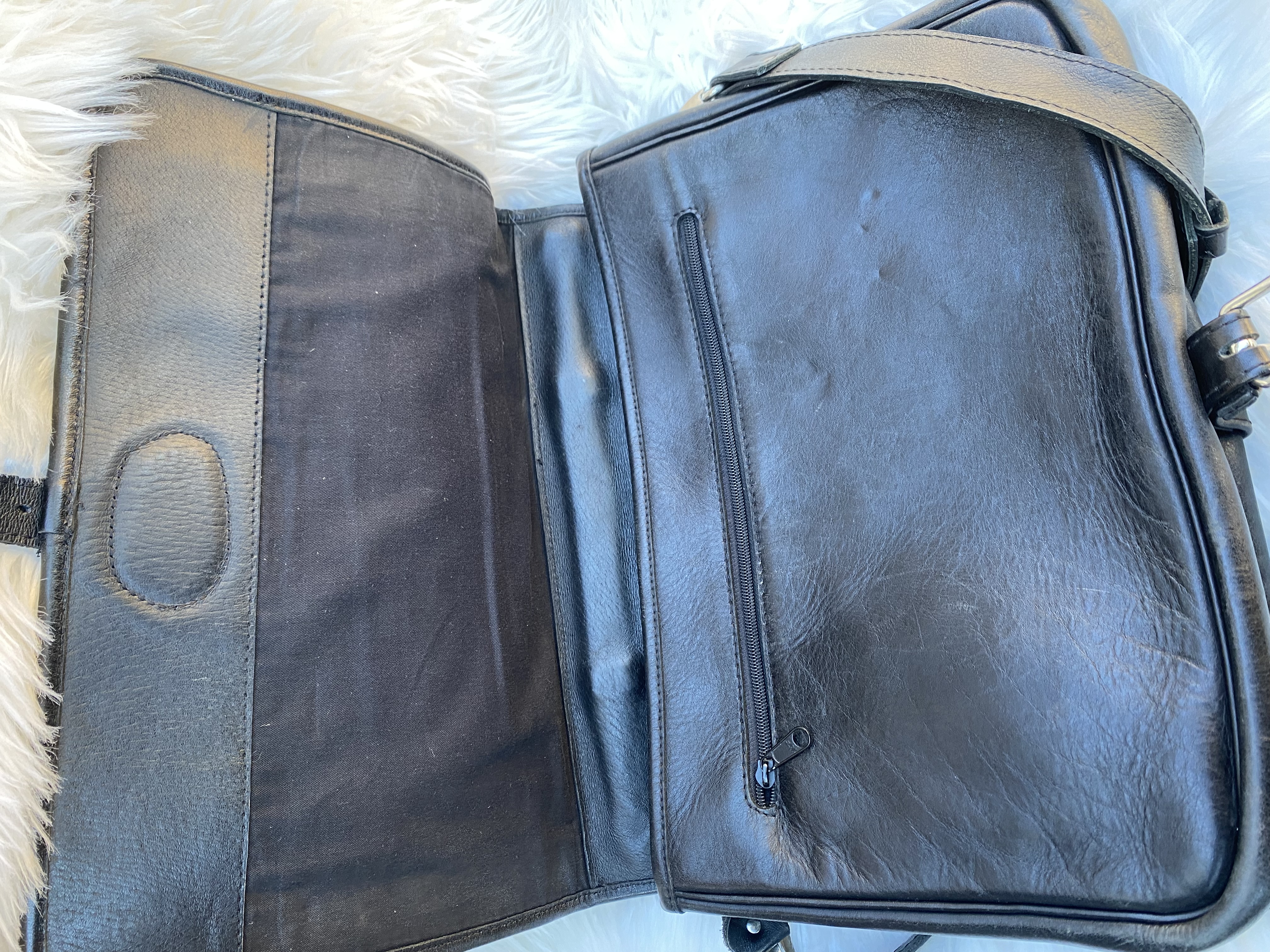 Genuine Cowhide leather Men’s messenger/work bag. Suitable for laptop and Documents. Good condition. L38cm..H28cm..W12cm.