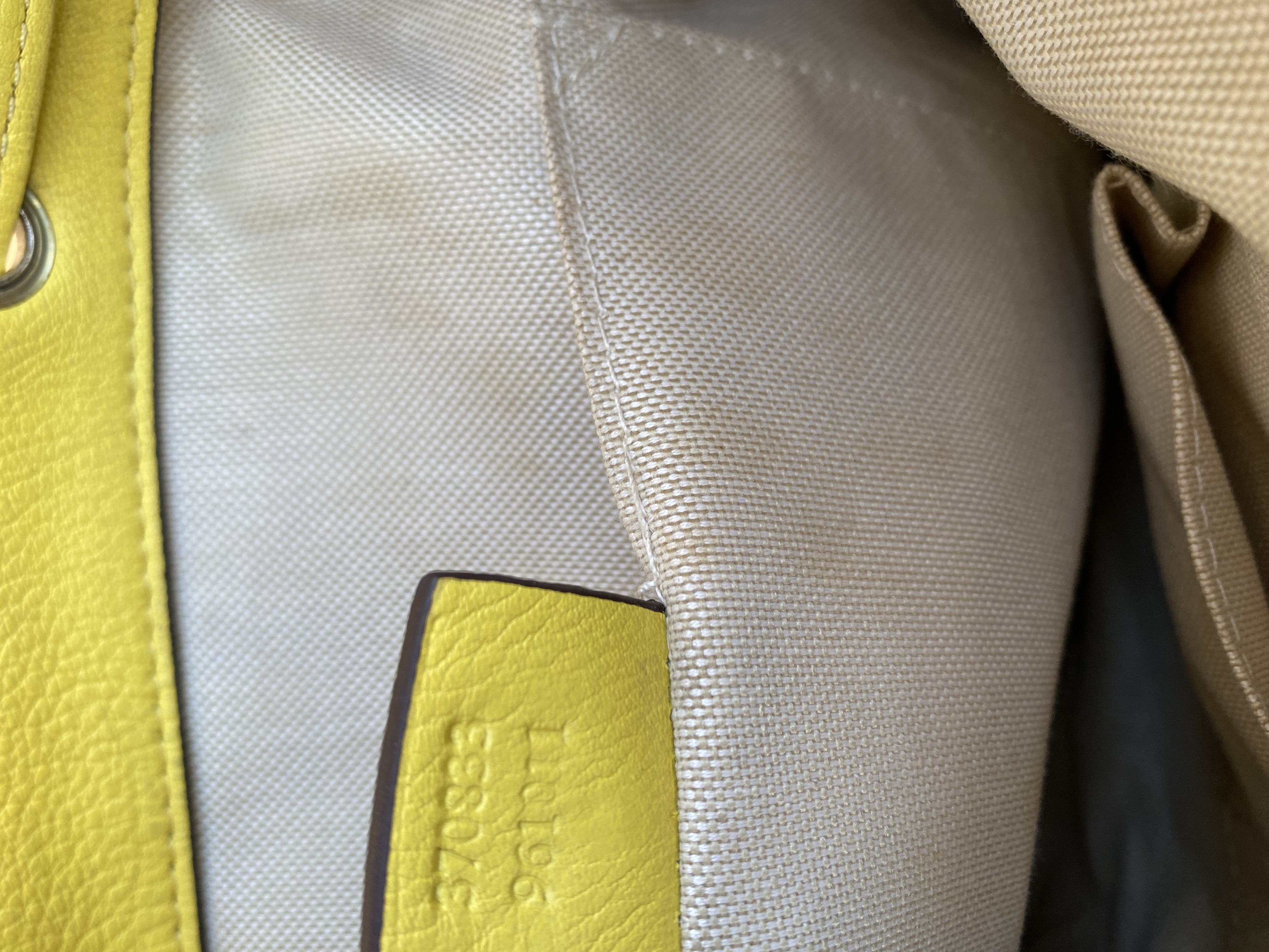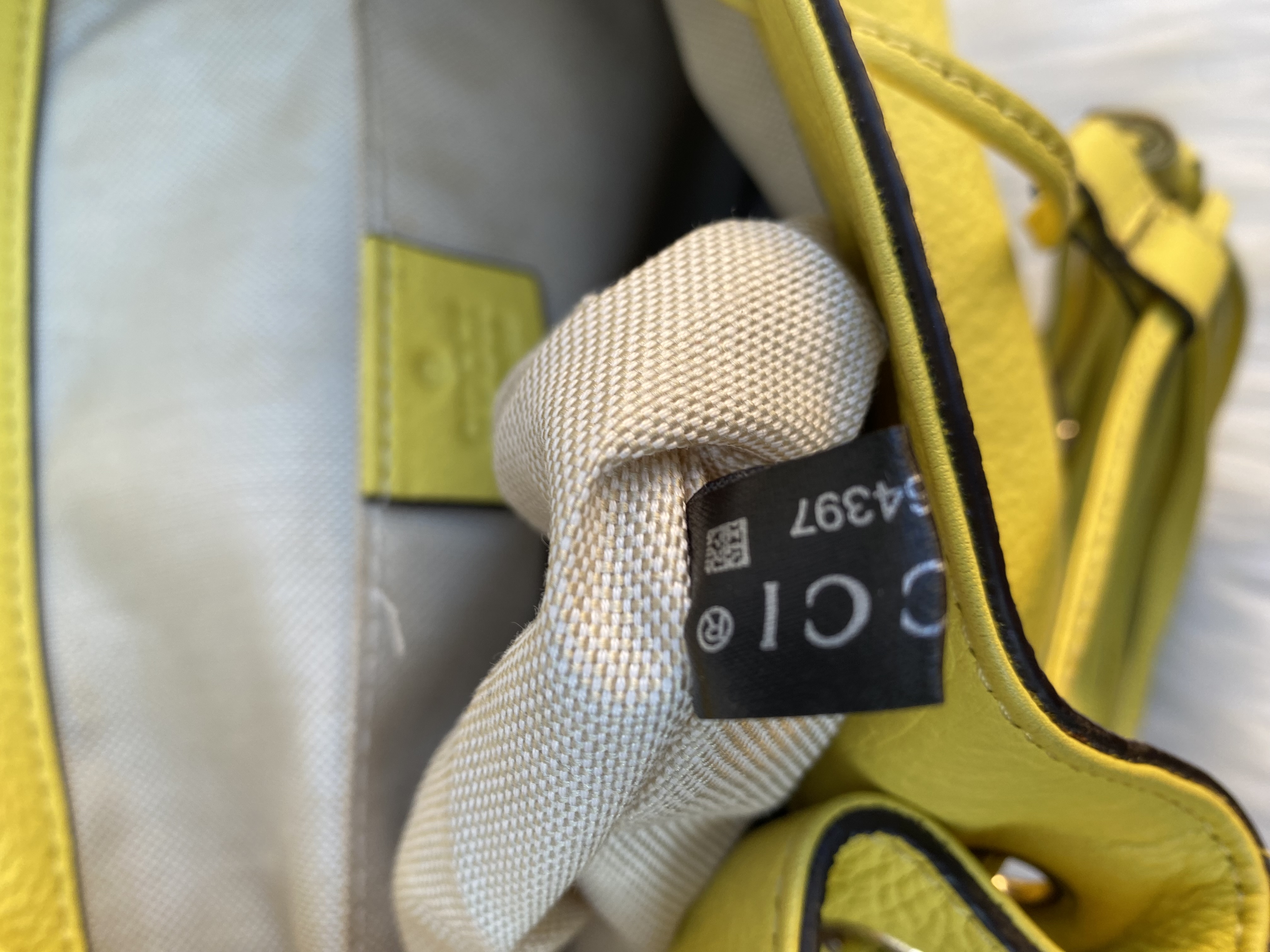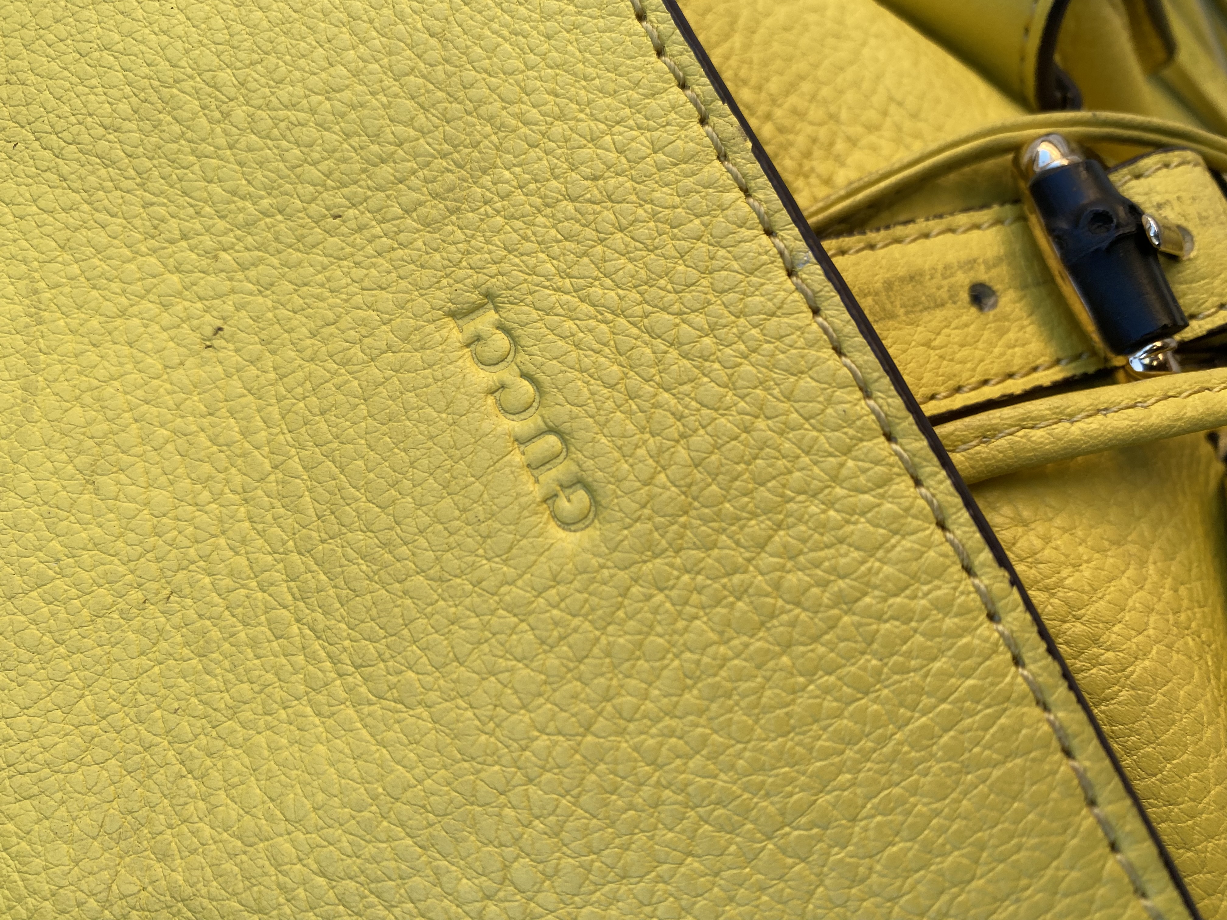 Gucci leather backpack in yellow colour with bamboo handle. Medium size. Good condition.