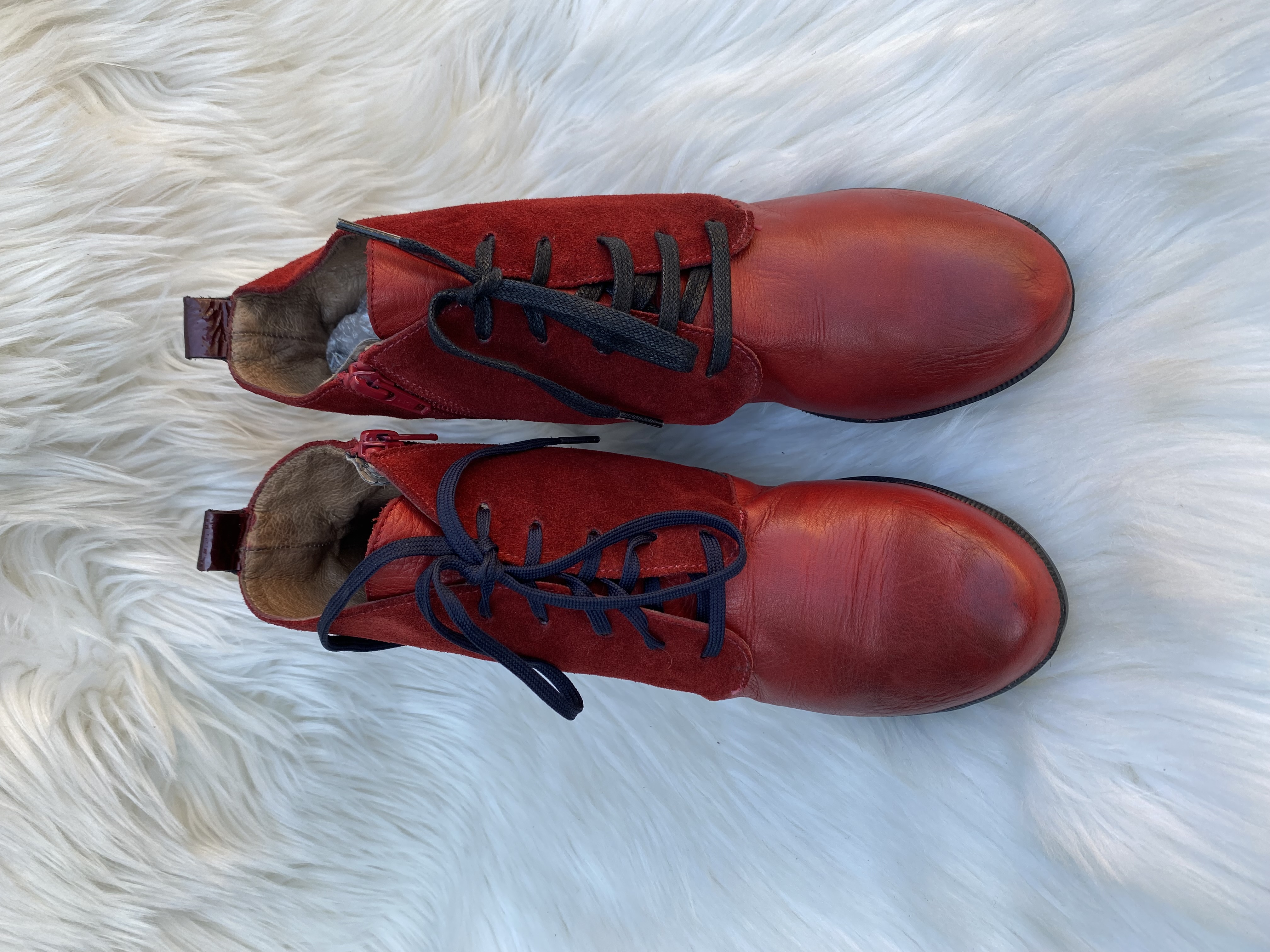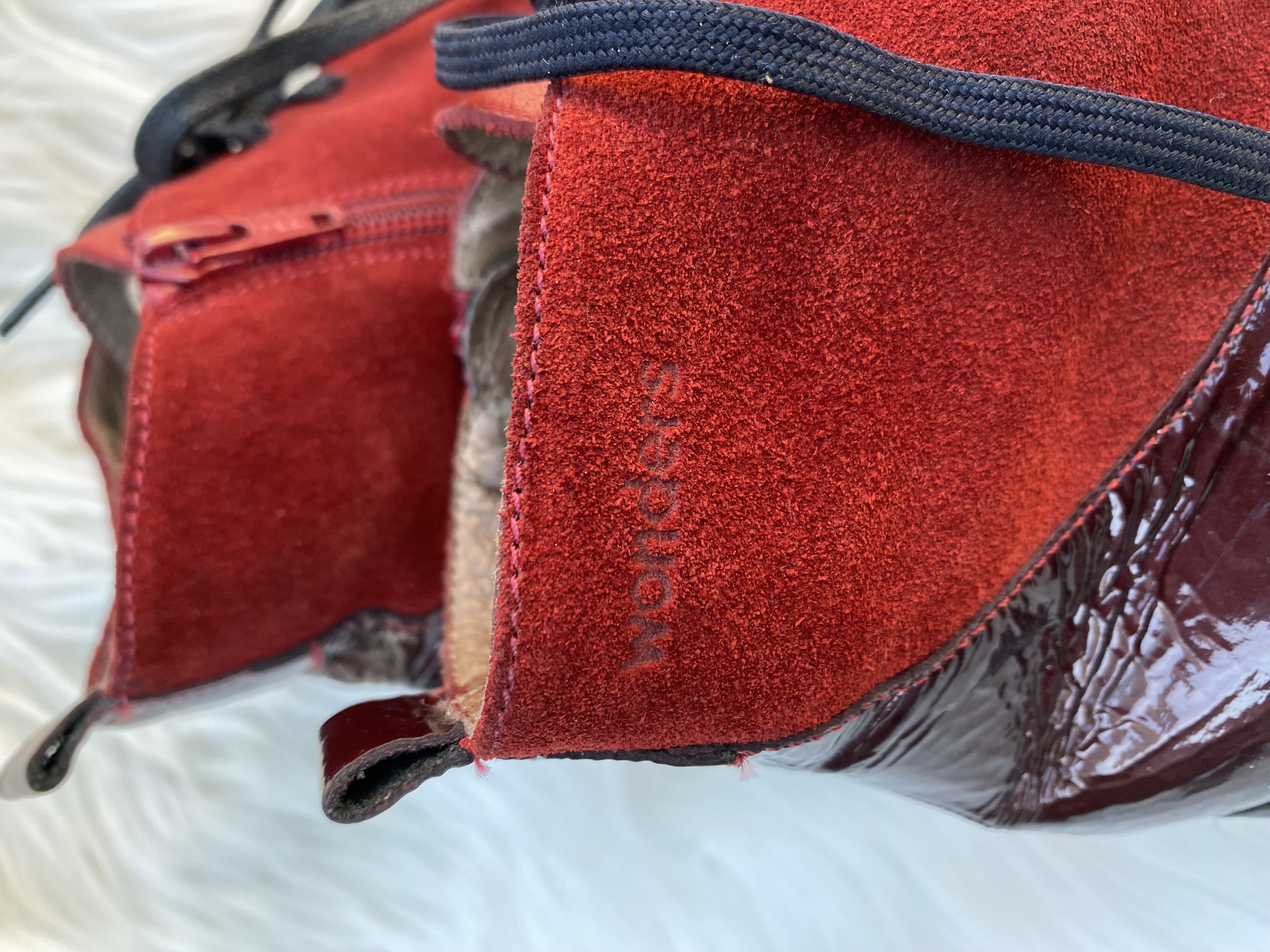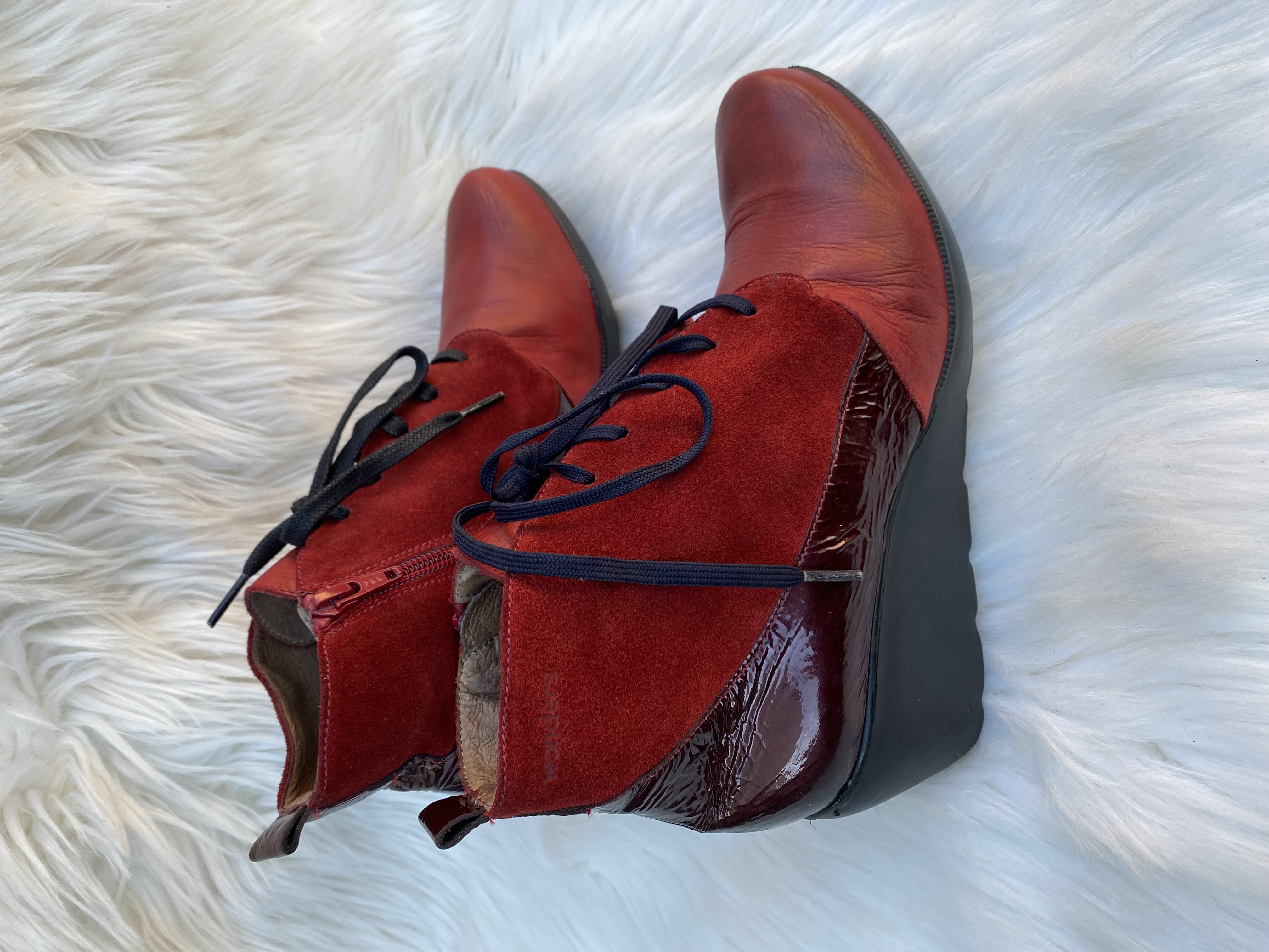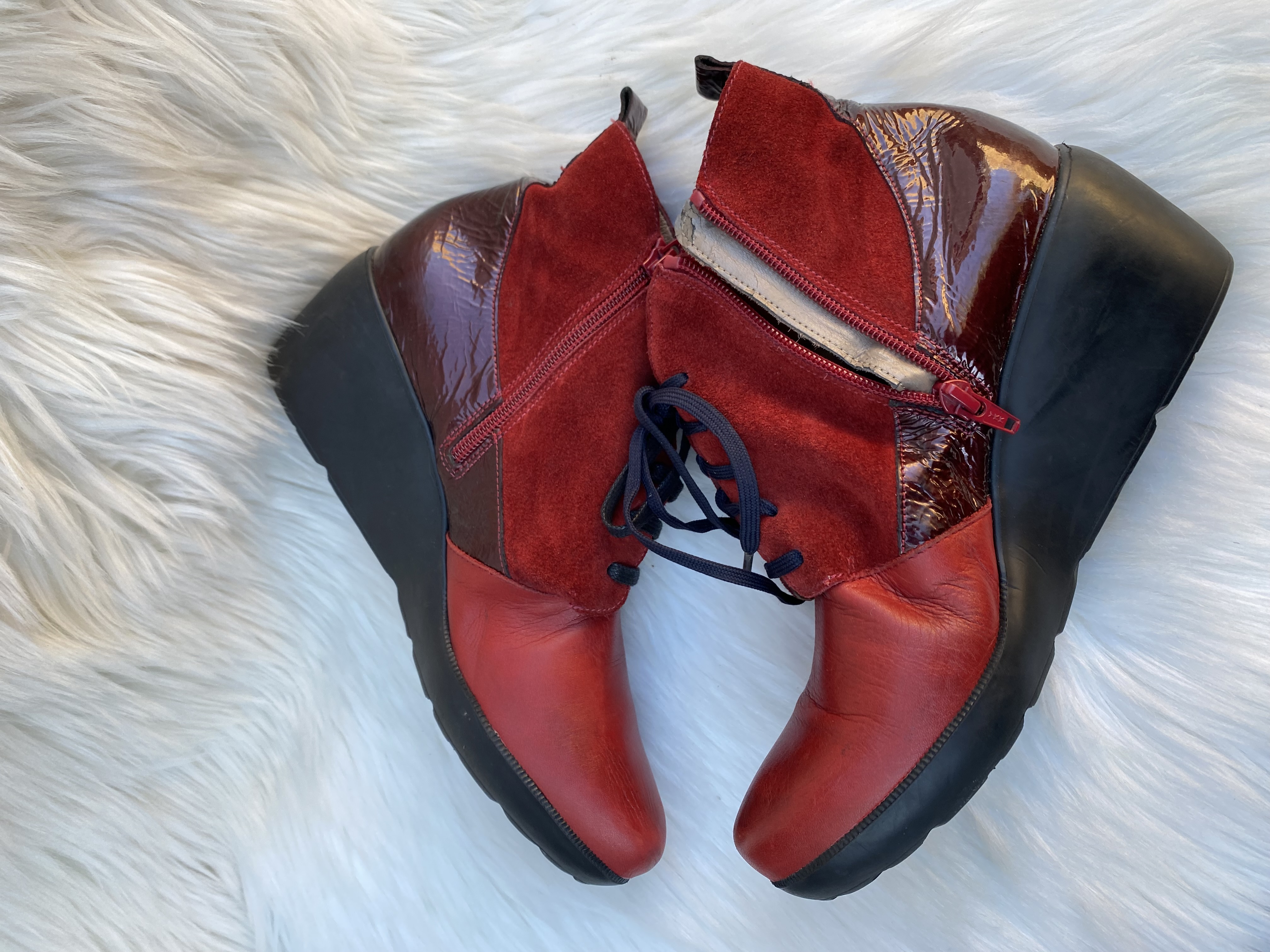 Genuine patent and suede leather wedge boot. Size uk 6.5. Good condition.