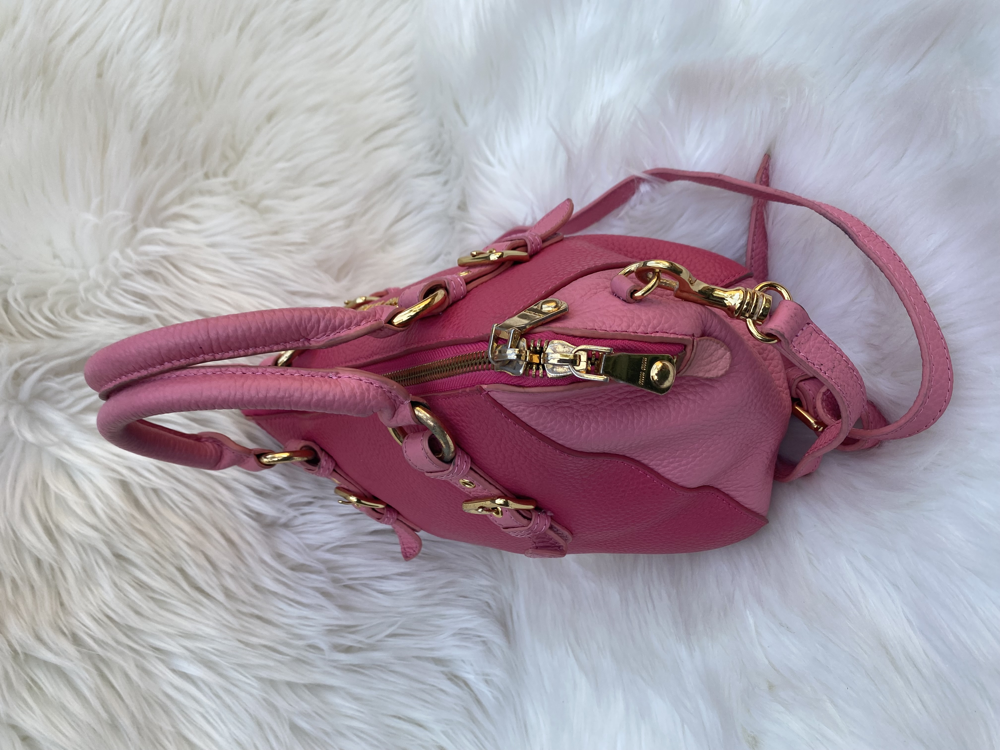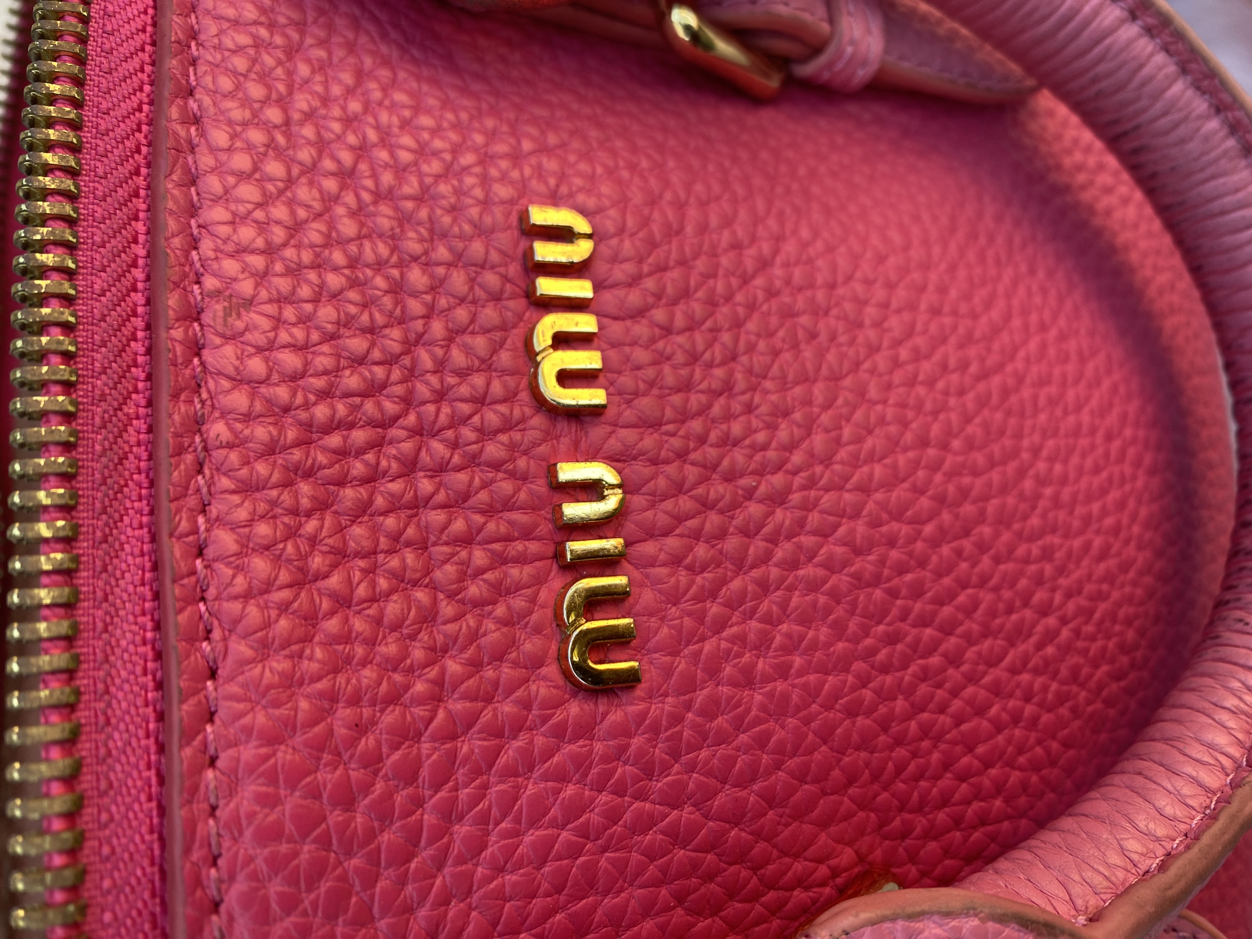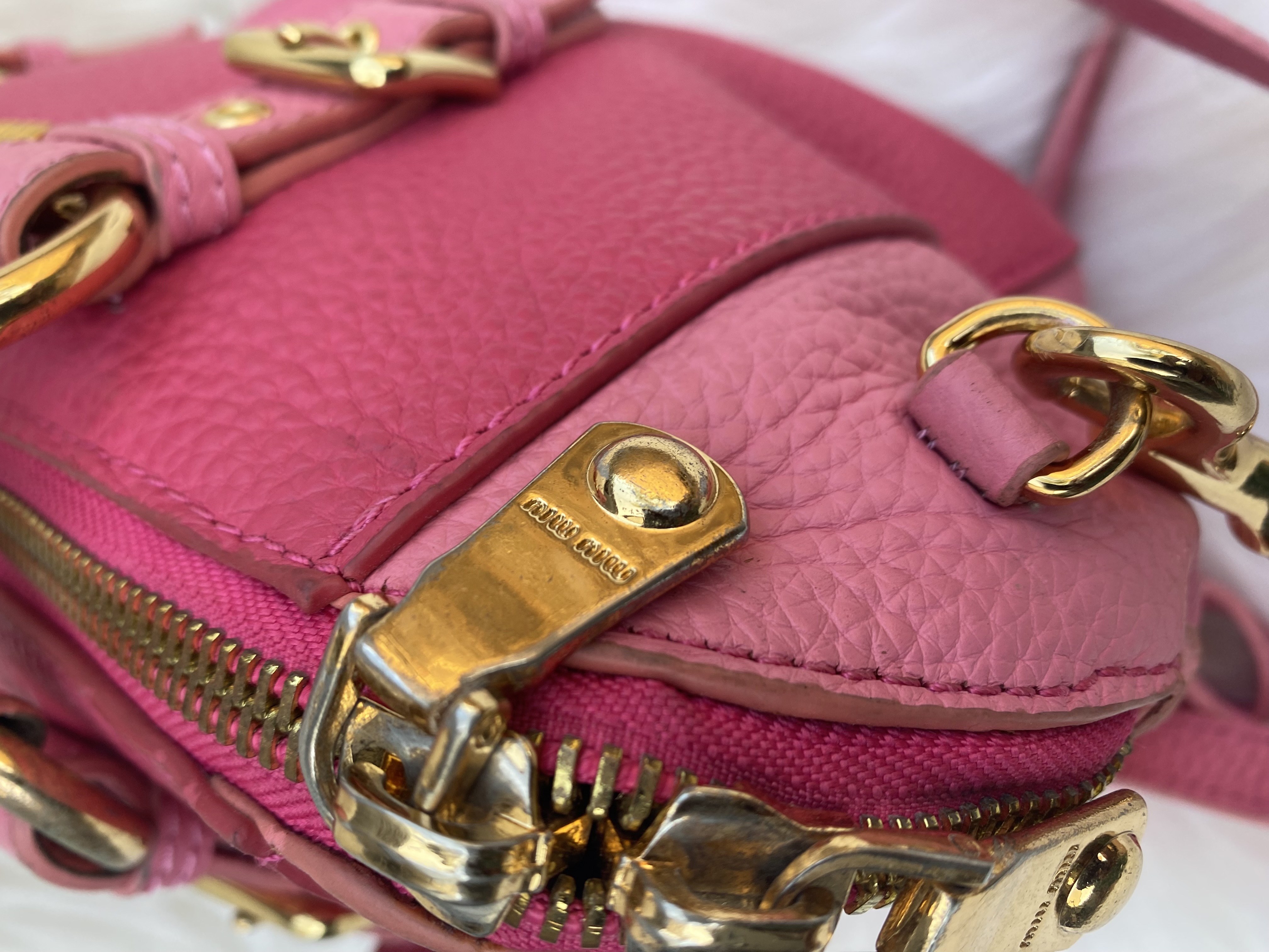 Preloved Miu Miu leather handbag, in two shades of pink colour. Good condition.