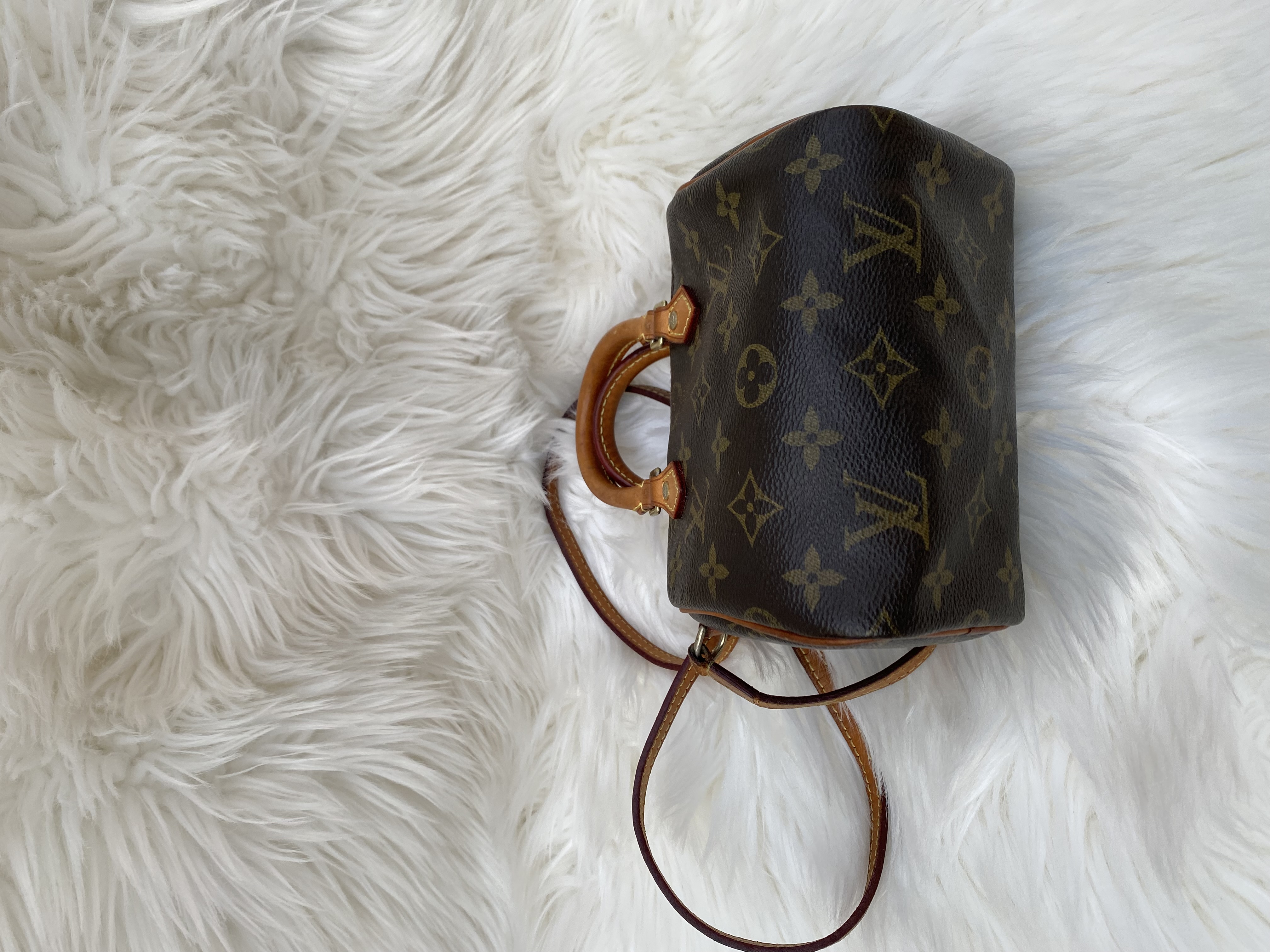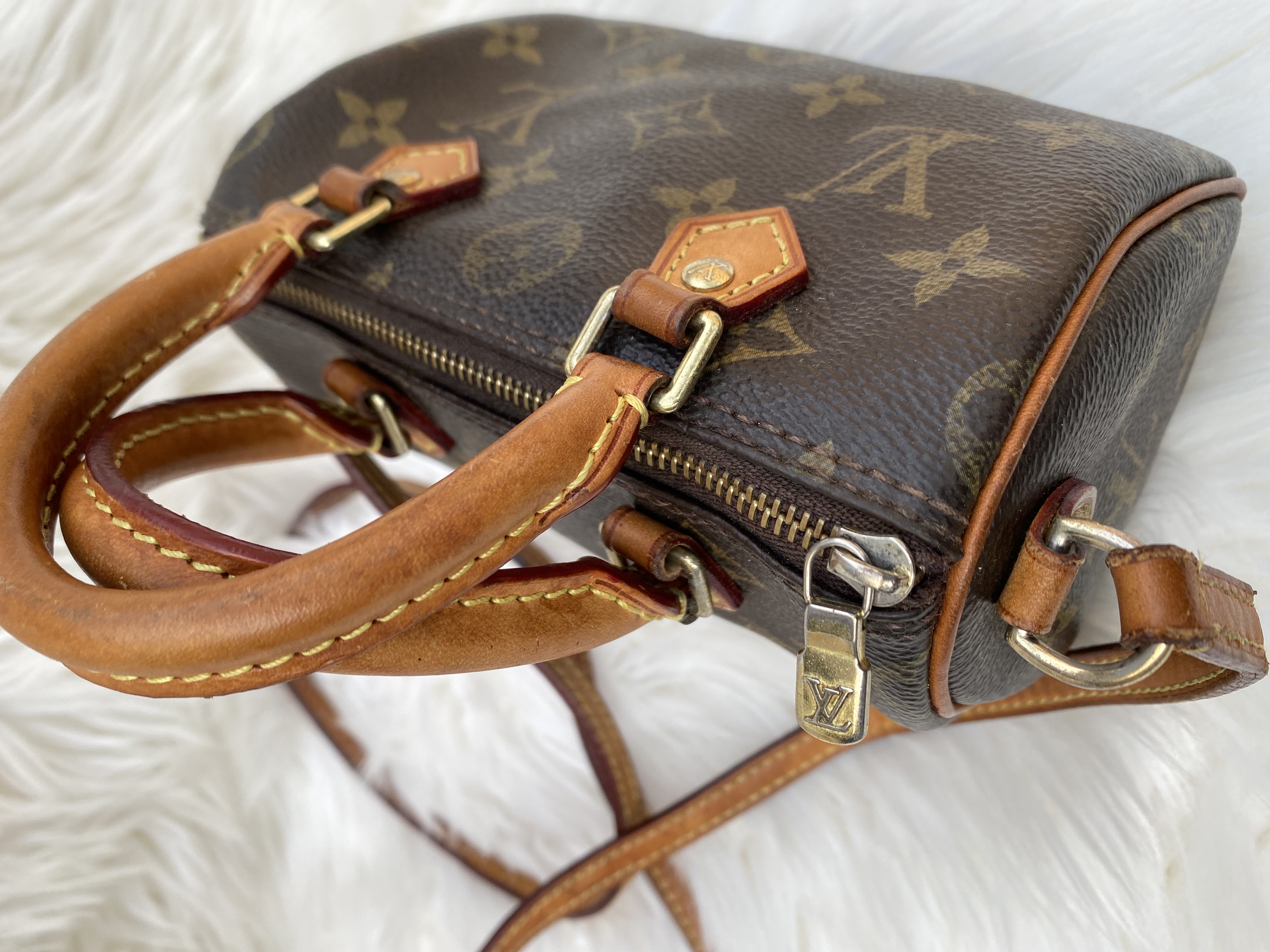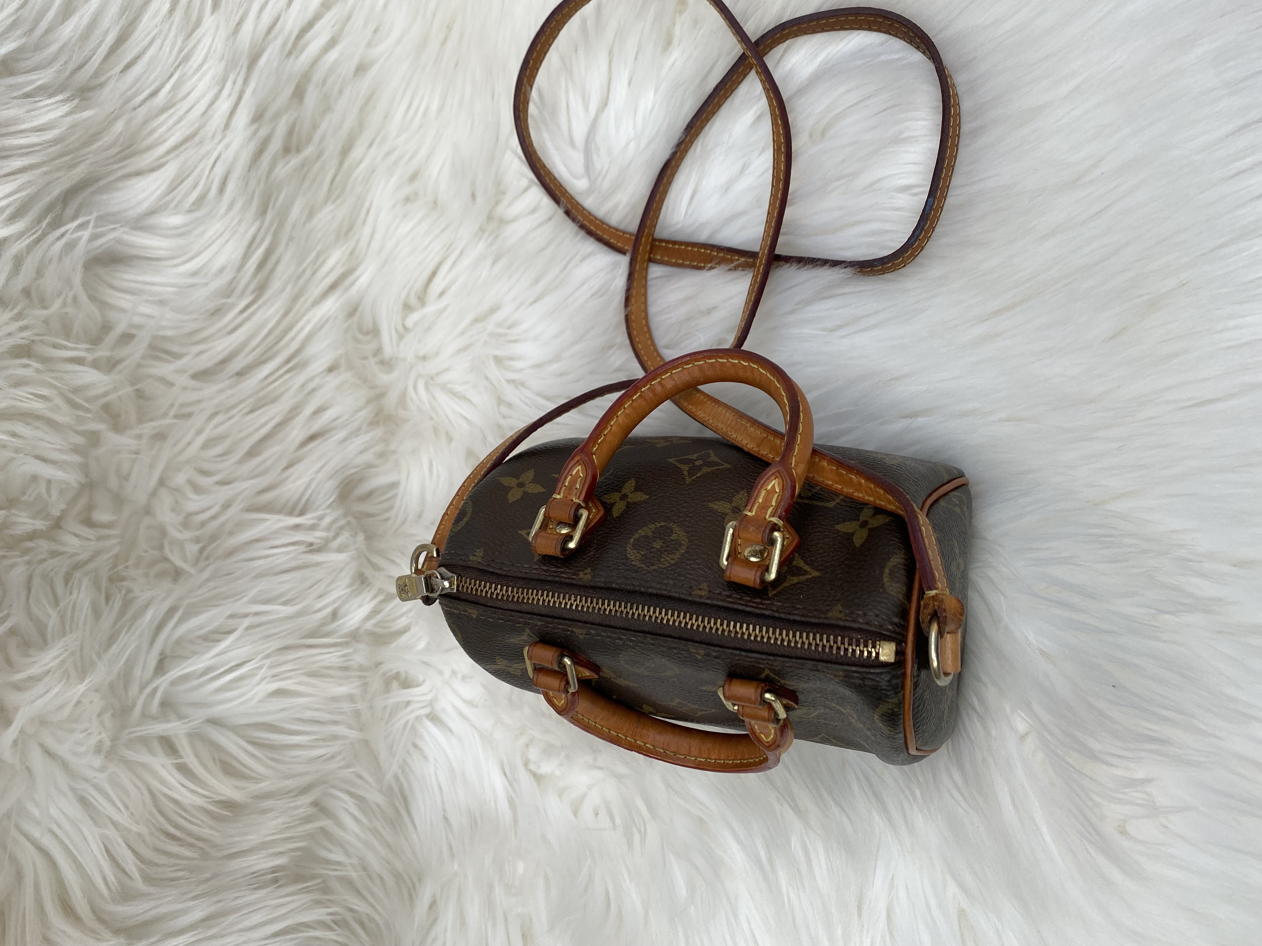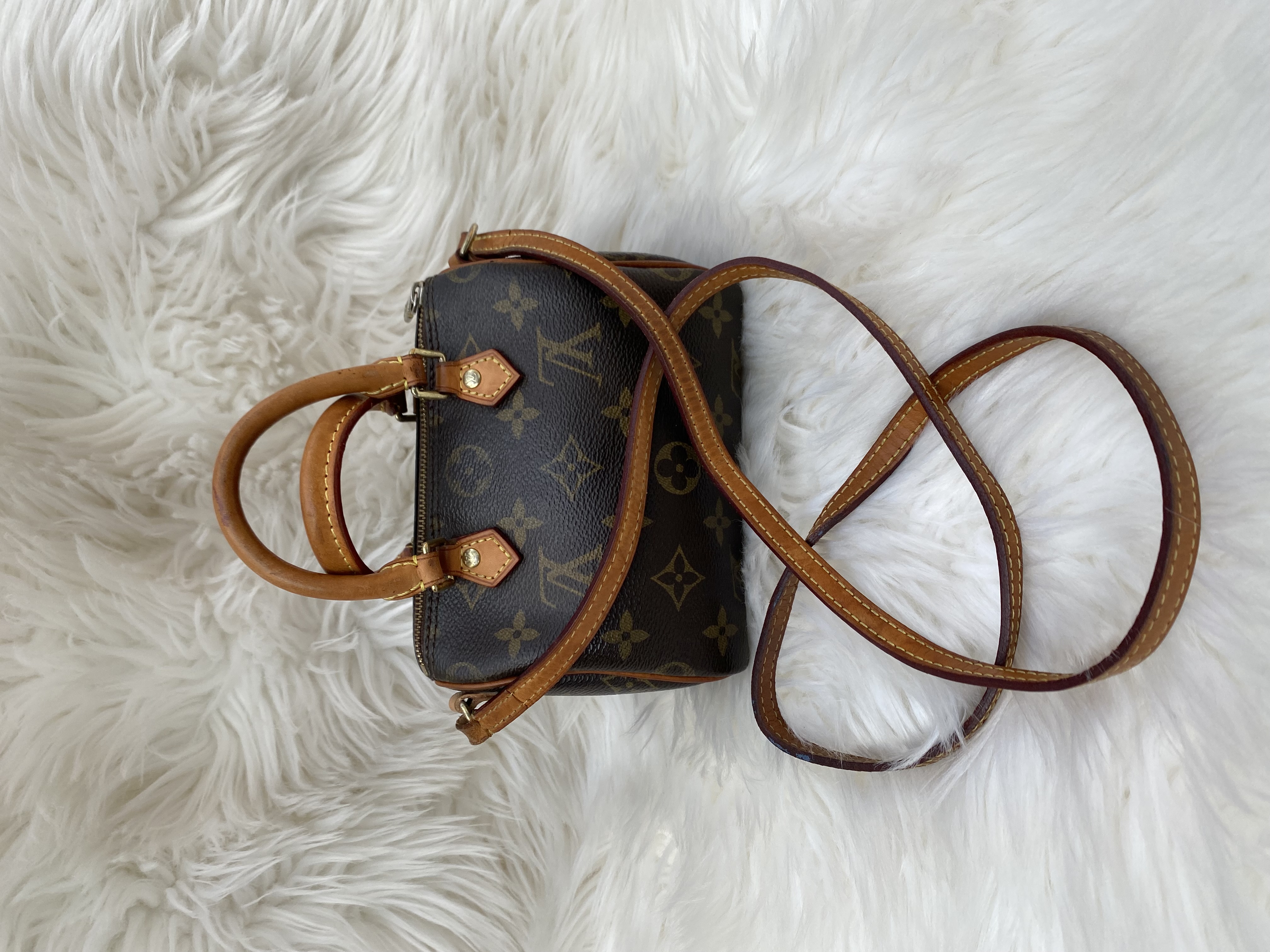 Fully PreLoved Louis Vuitton monogram speedy nano crossbody bag. Good condition..L16cm..H12cm..W10cm.