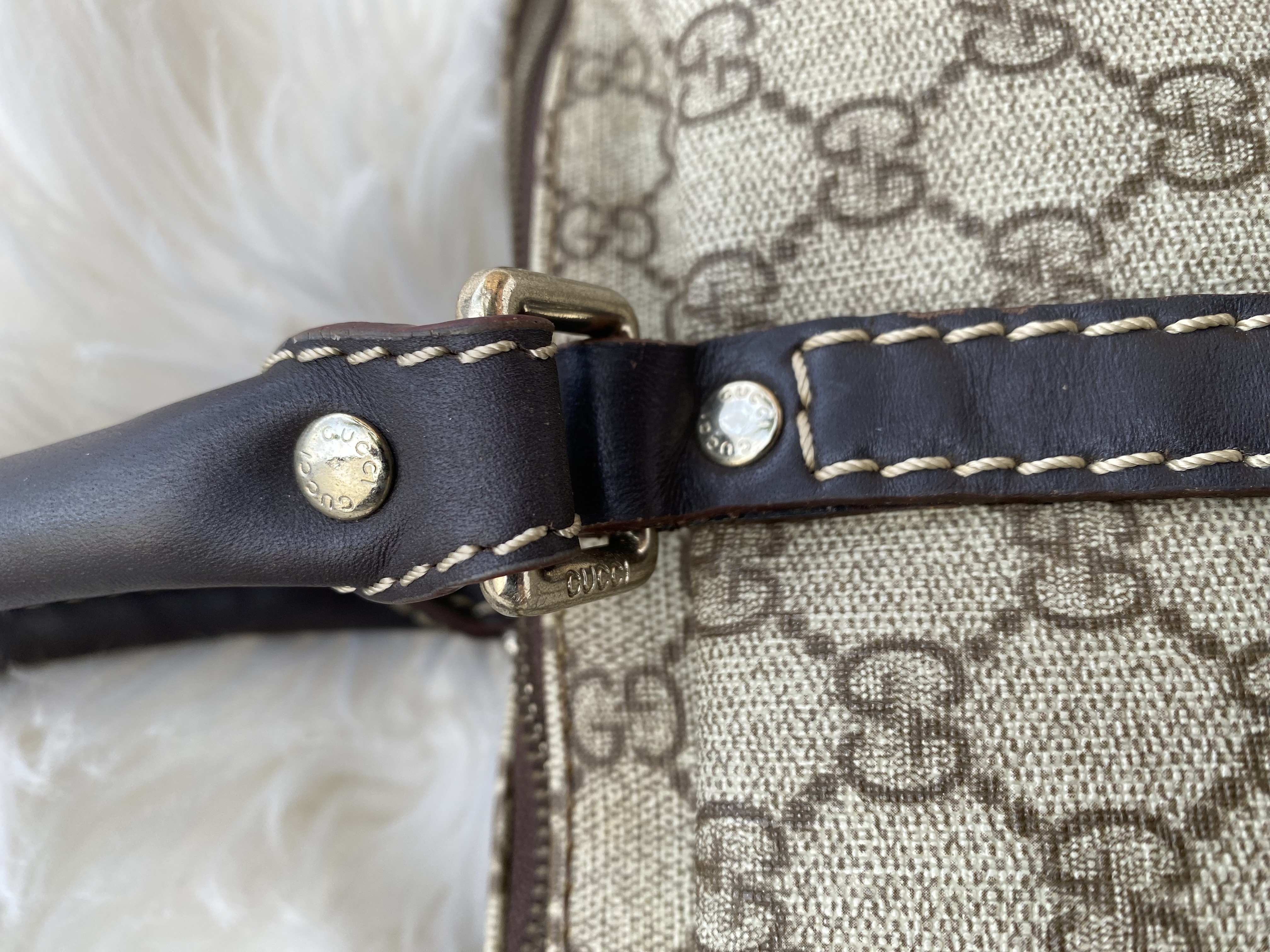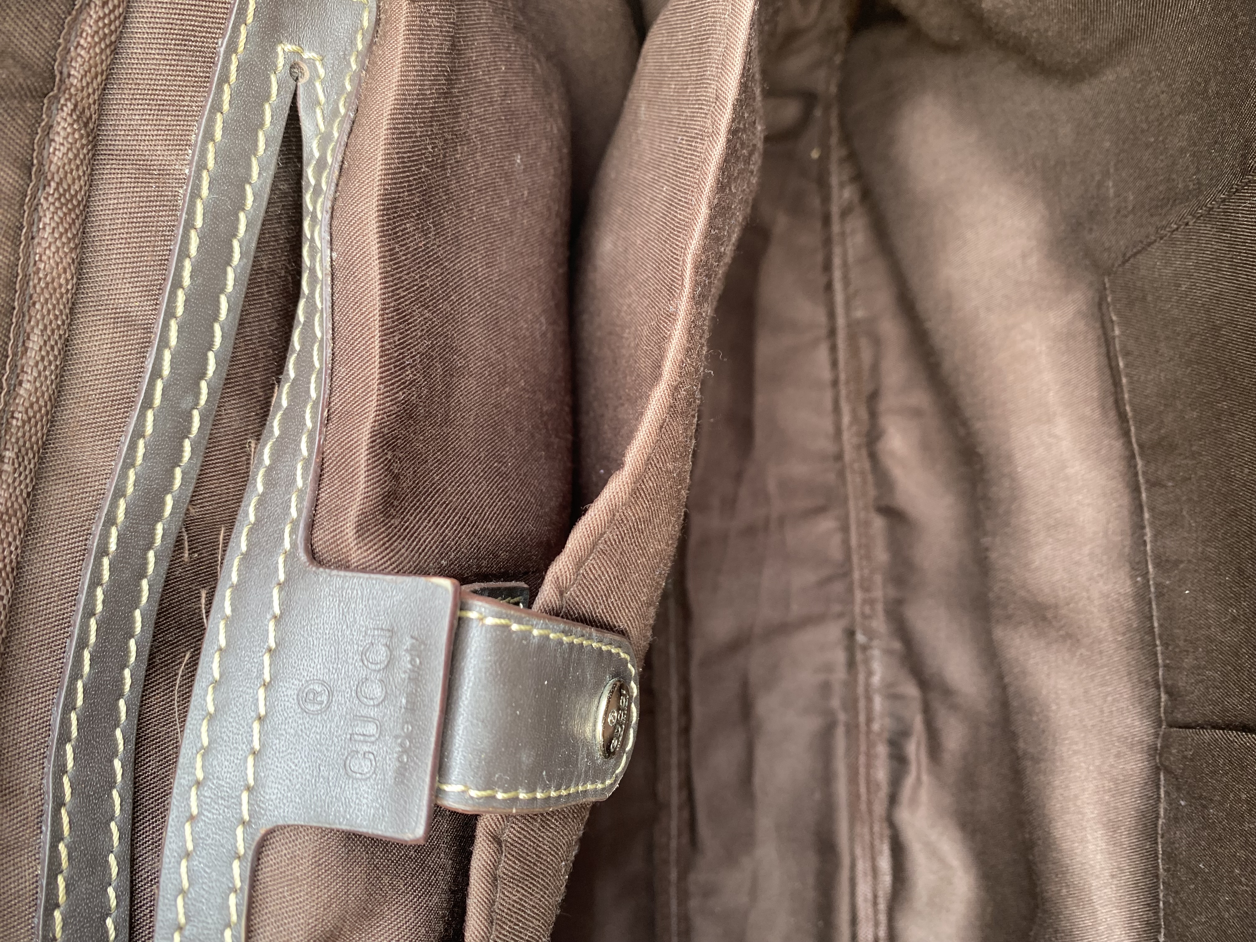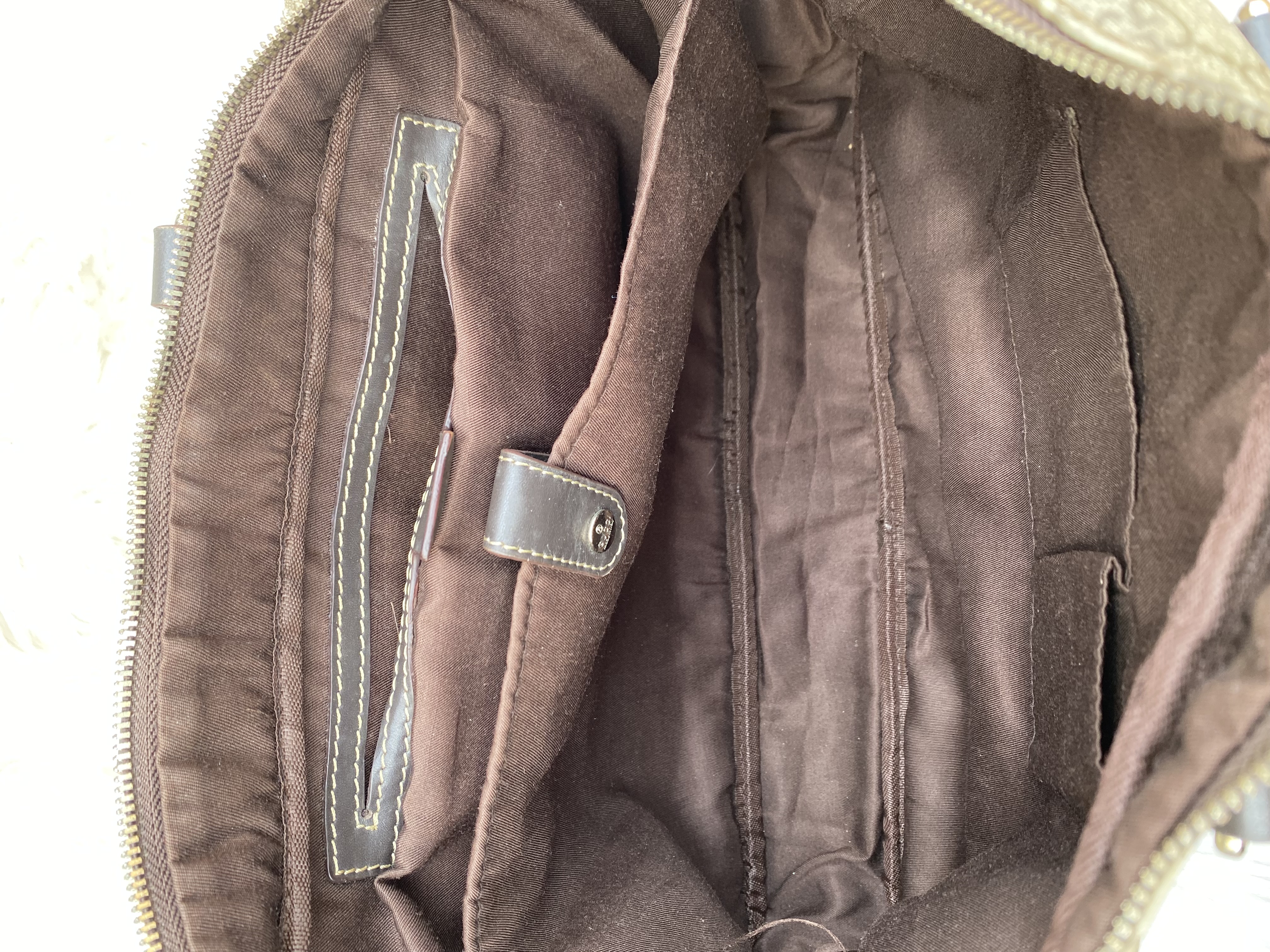 Preloved Vintage Gucci GG on canvas briefcase.model number: 201480. Genuine natural leather handles and trims. Suitable for laptop and files.L40cm..H30cm..W8cm.