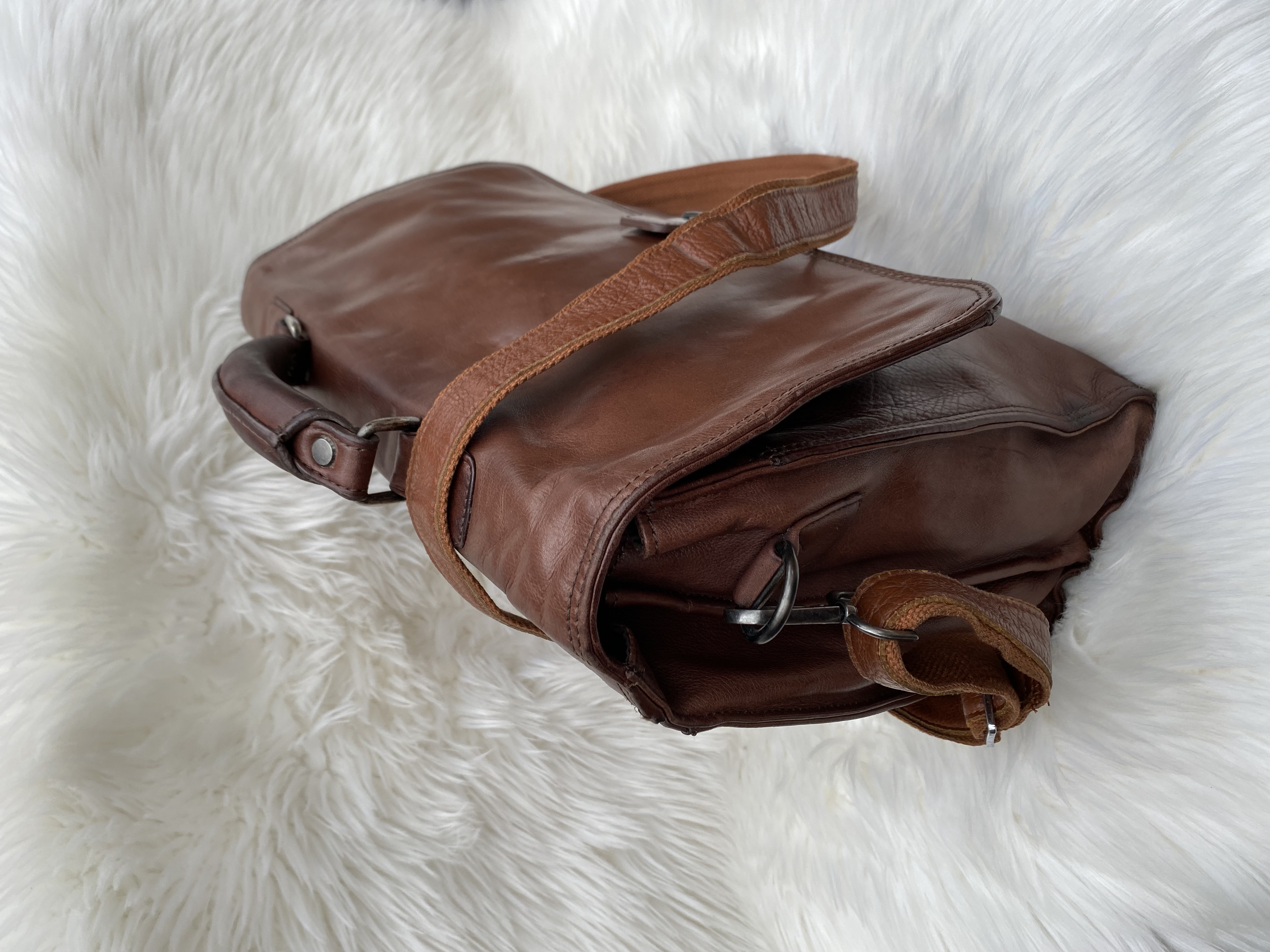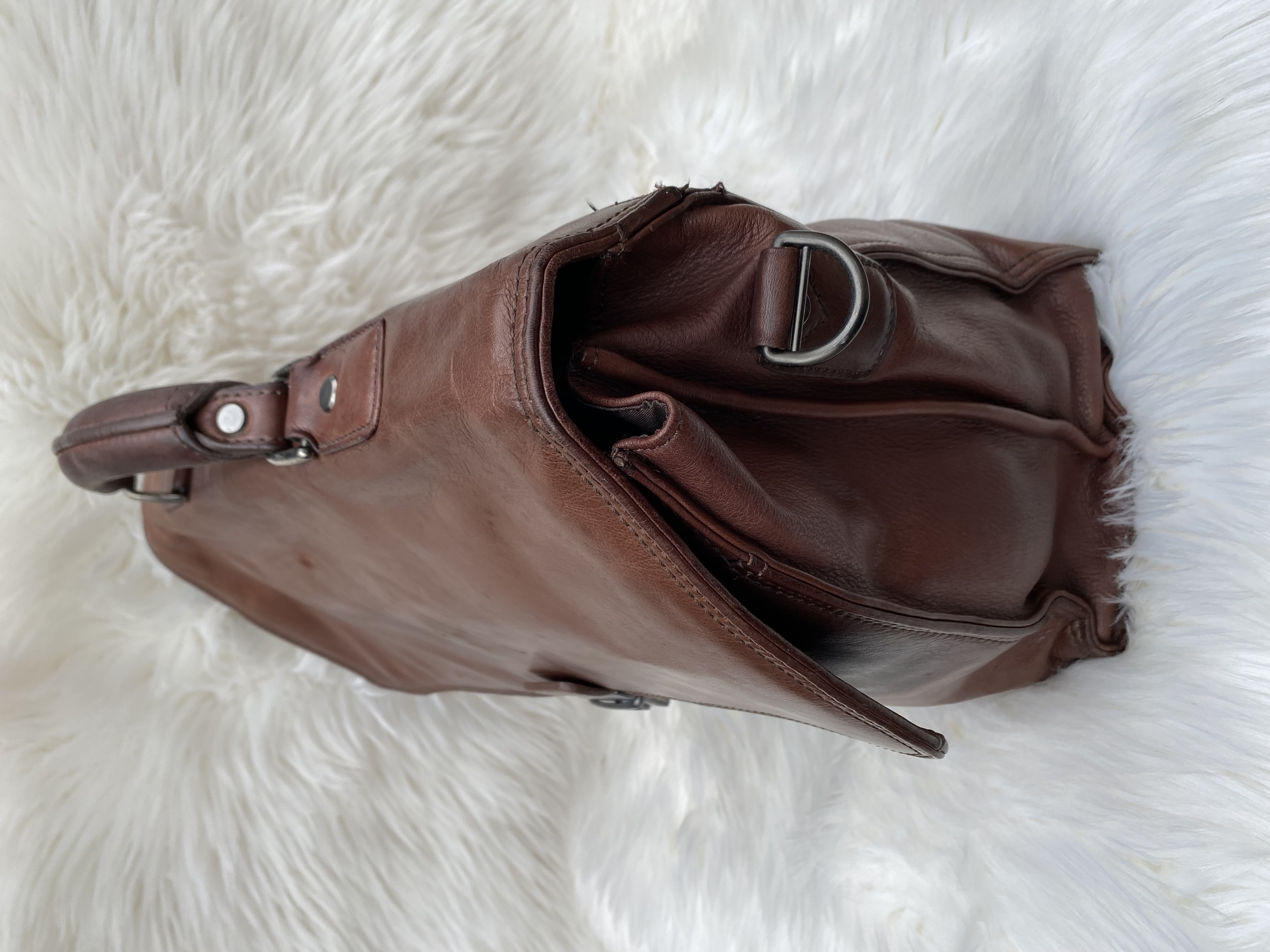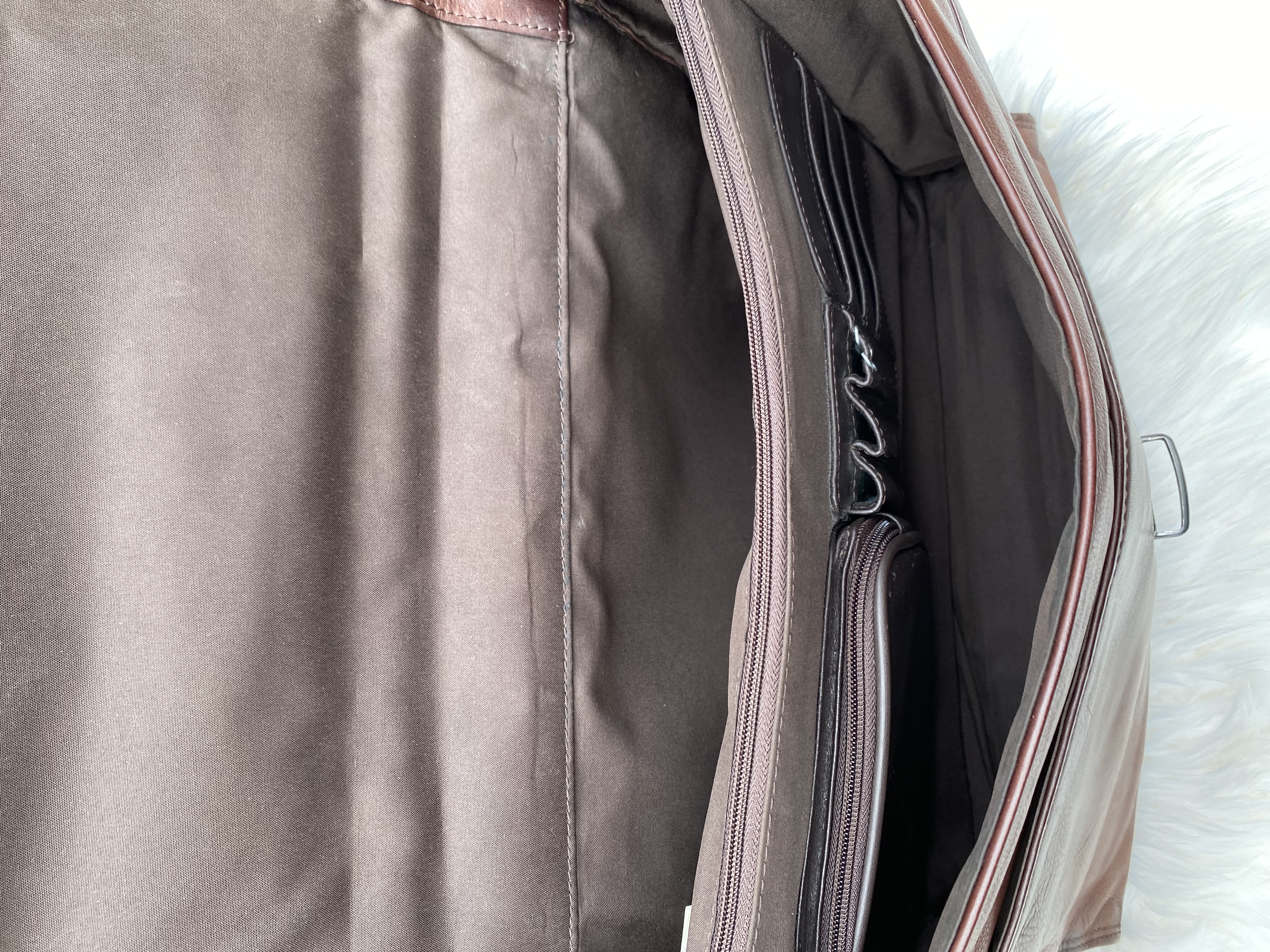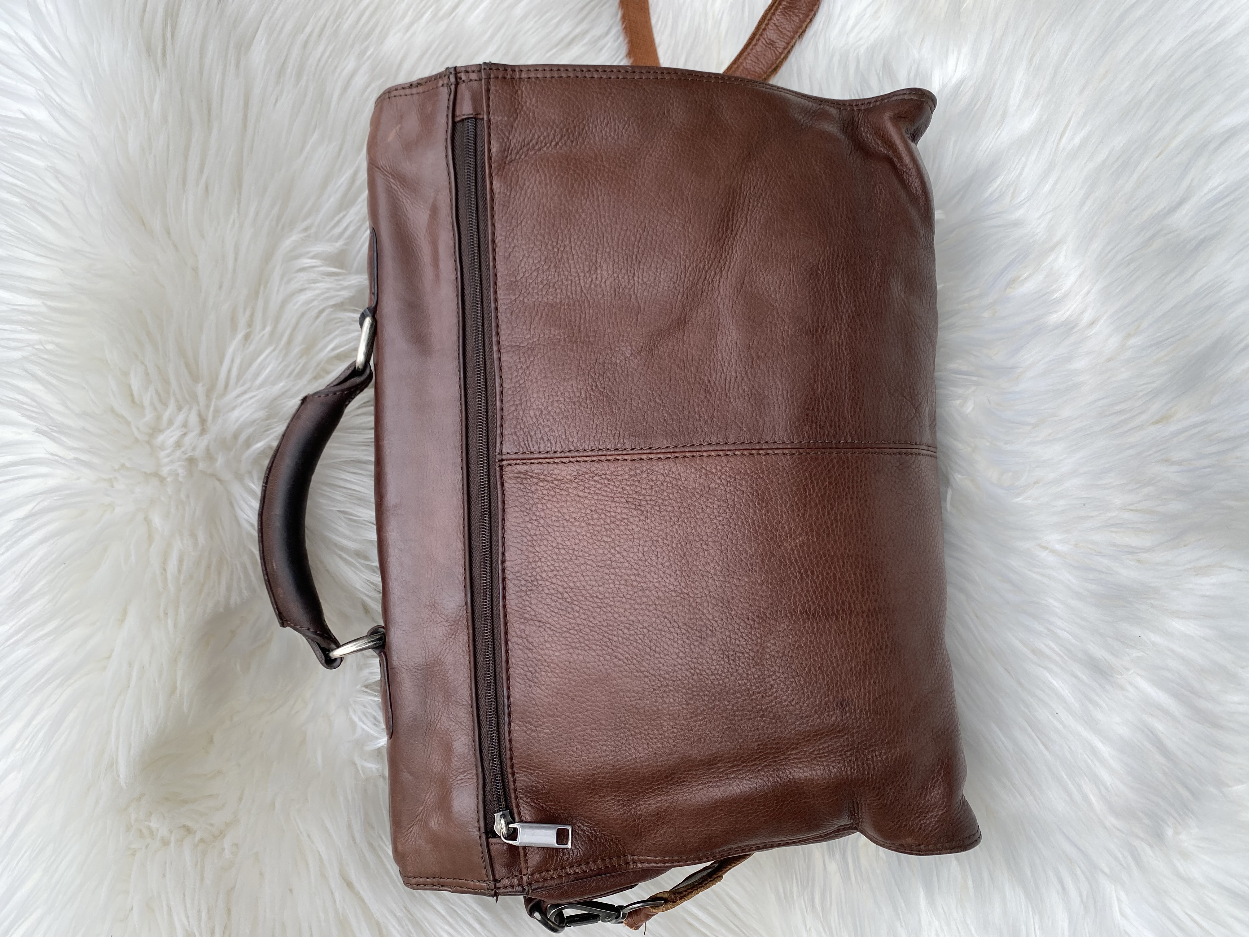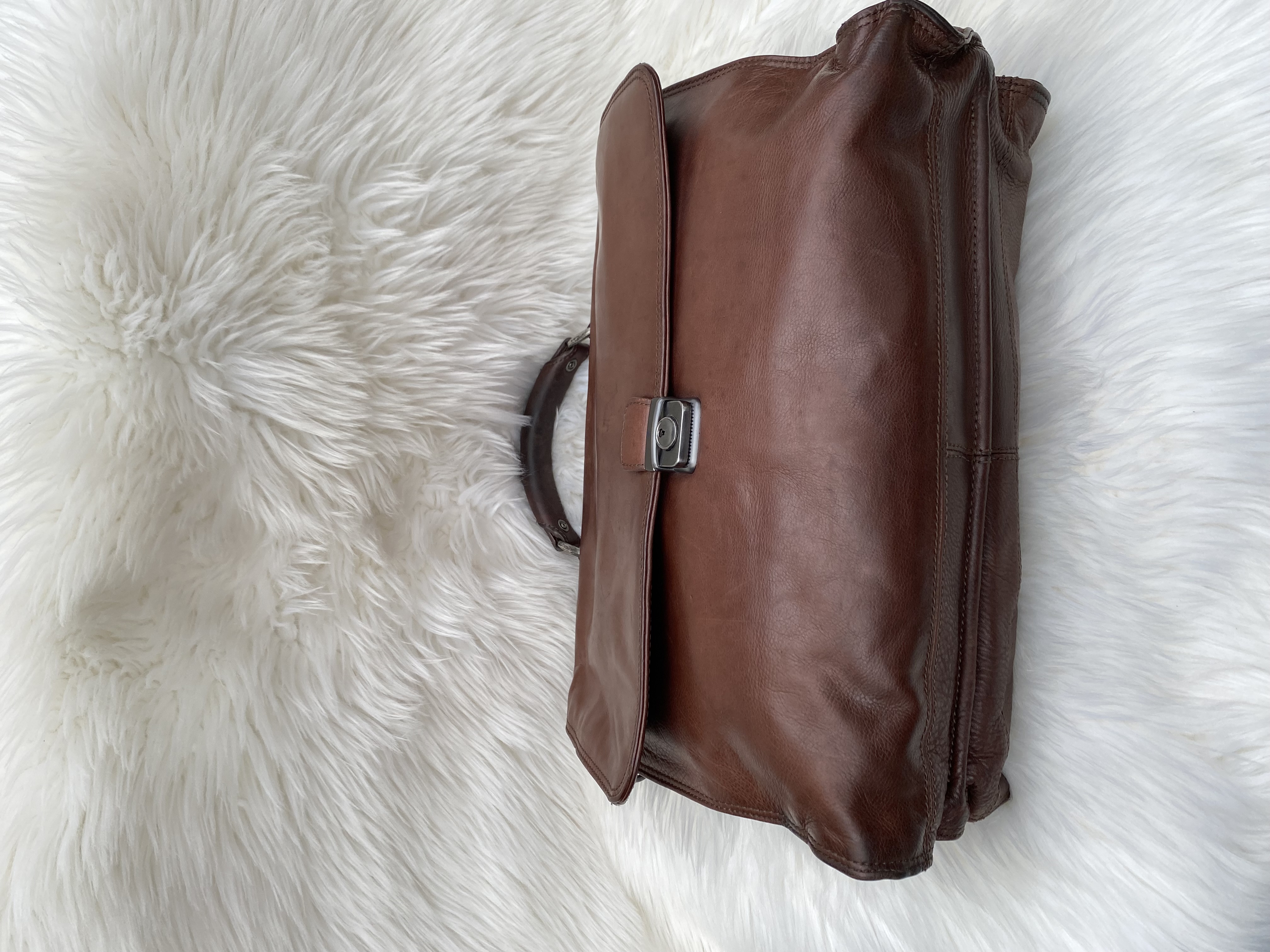 Genuine grain cowhide leather briefcase. Good condition. Suitable for laptop and files. Brownish tan colour. L49cm..H32cm..W16cm.