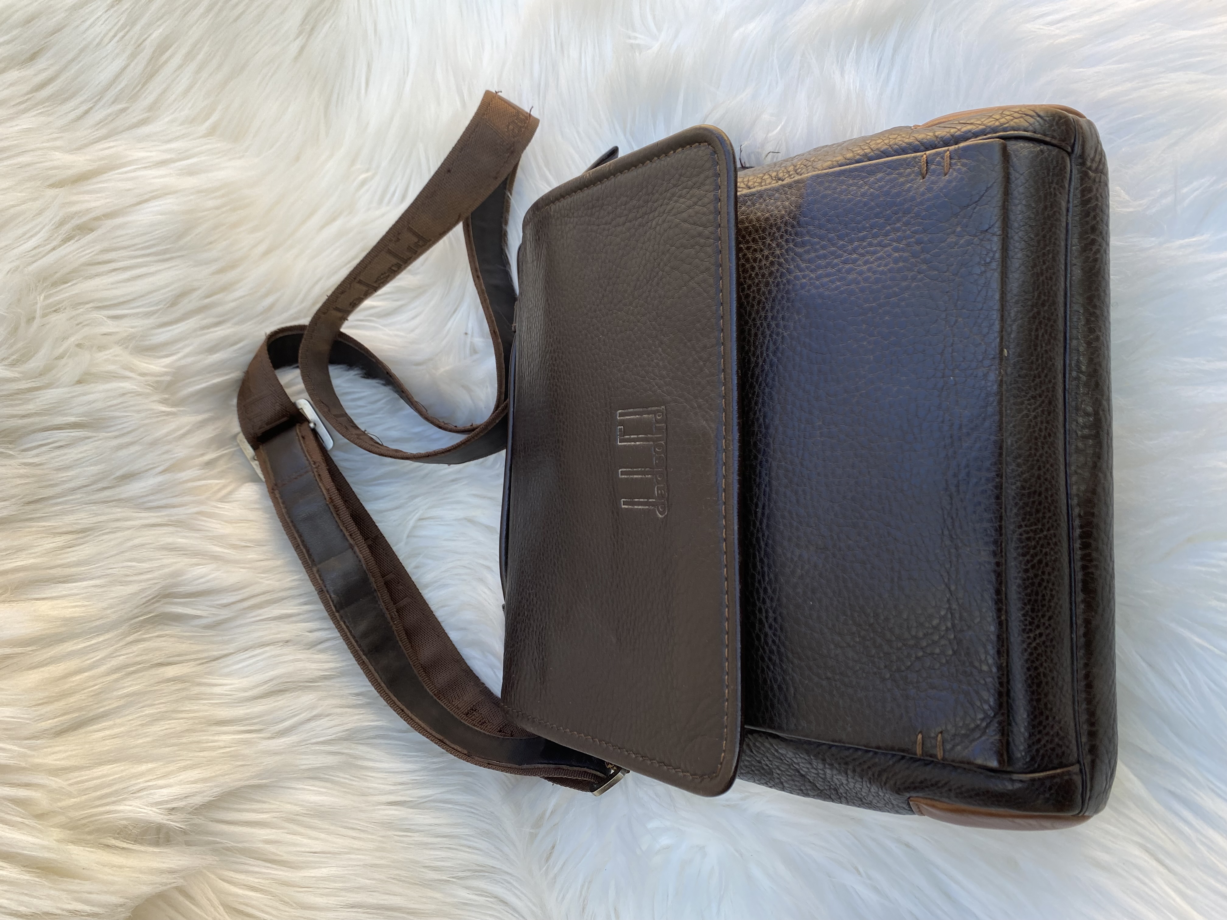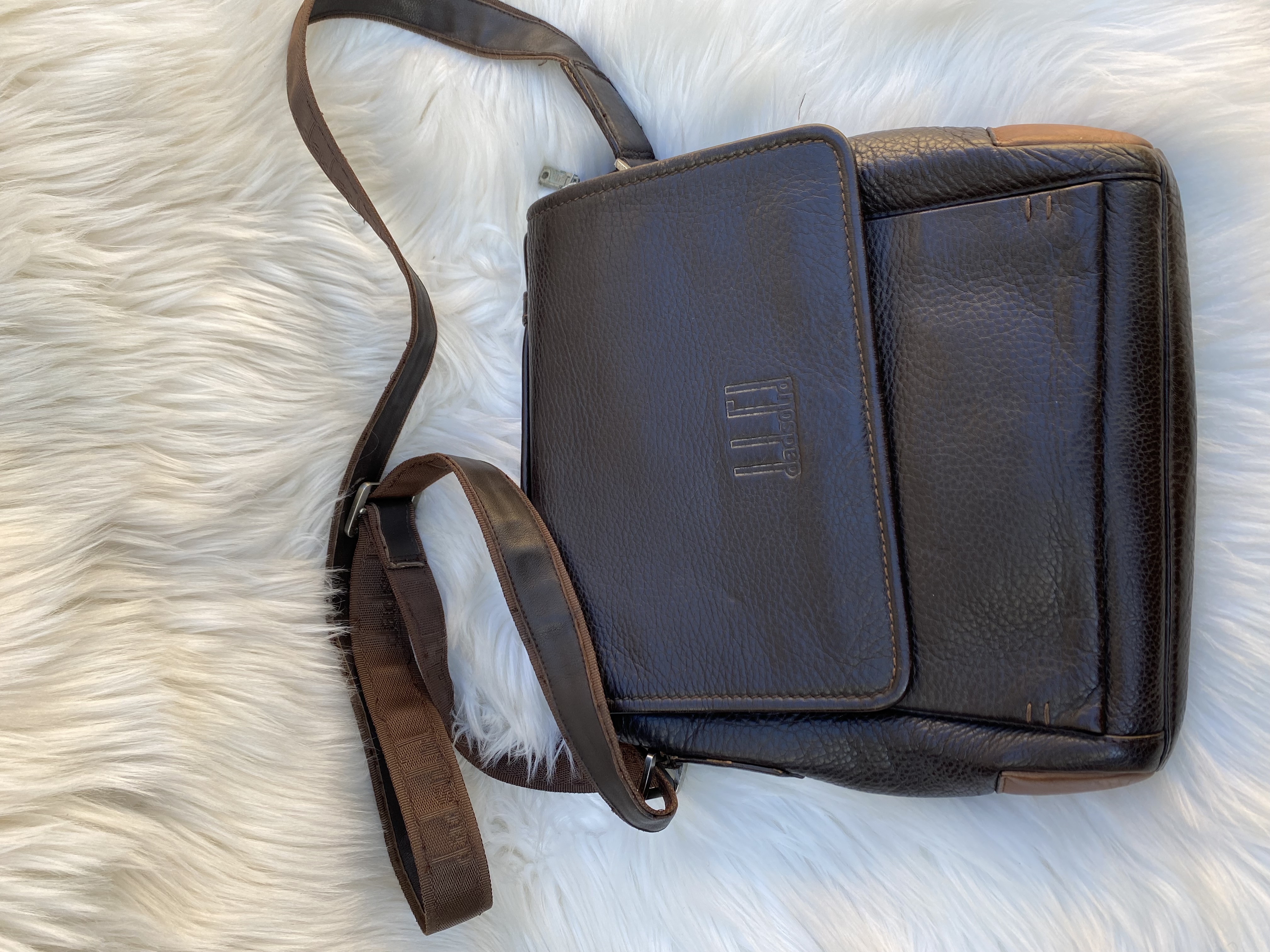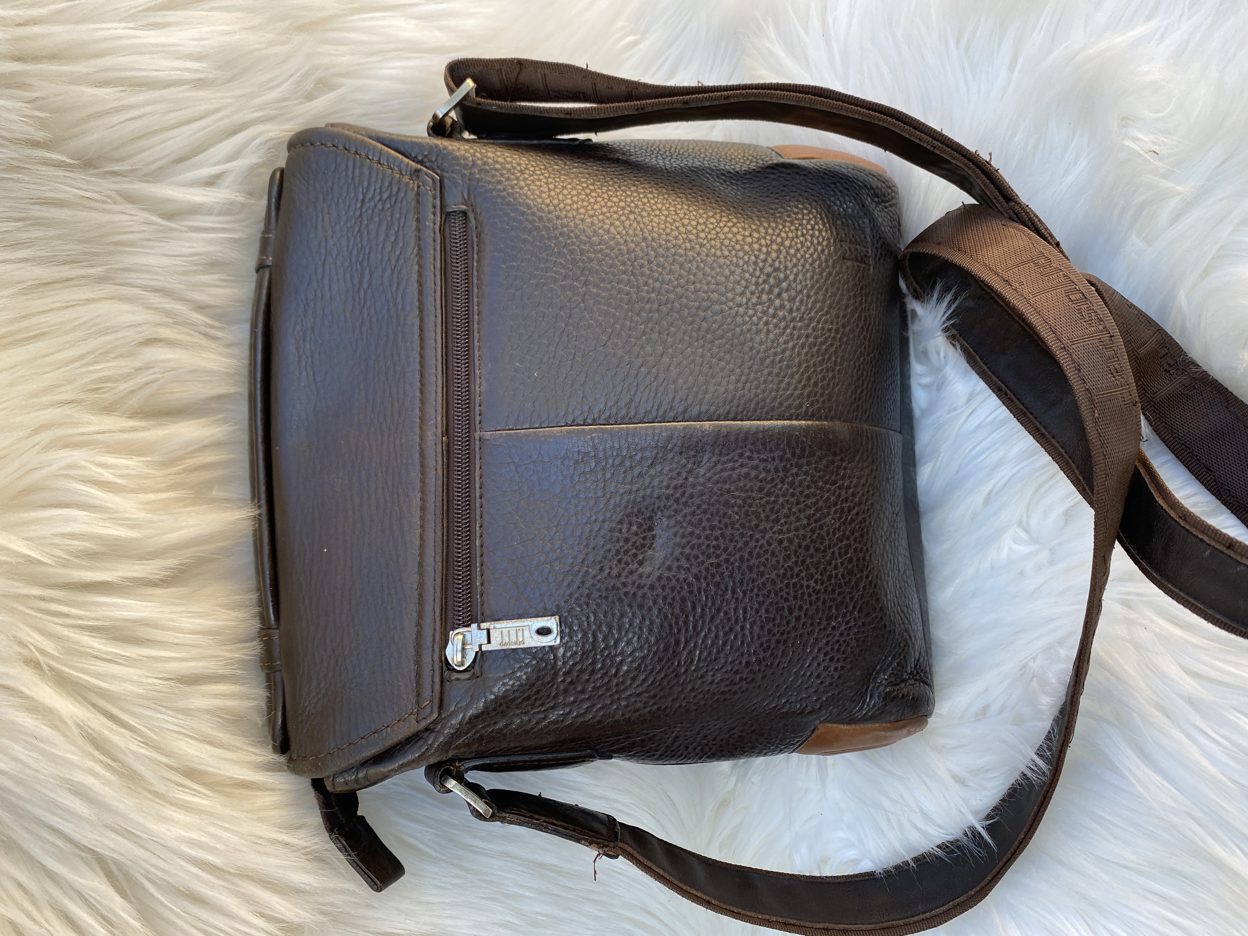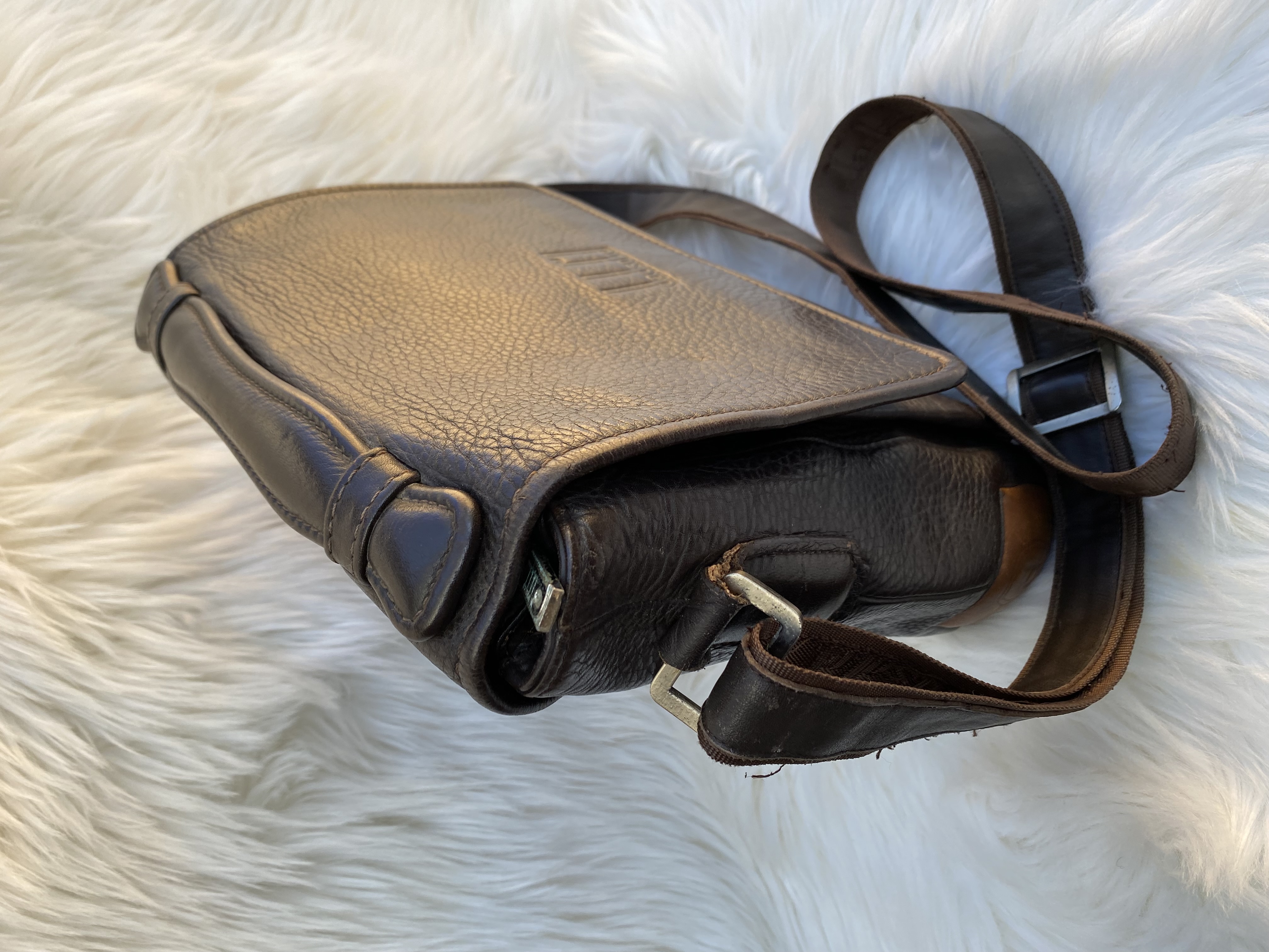 Genuine Leather Men’s side bag. Medium size. Good condition. Dark brown colour.L25cm..H29cm..W8cm.