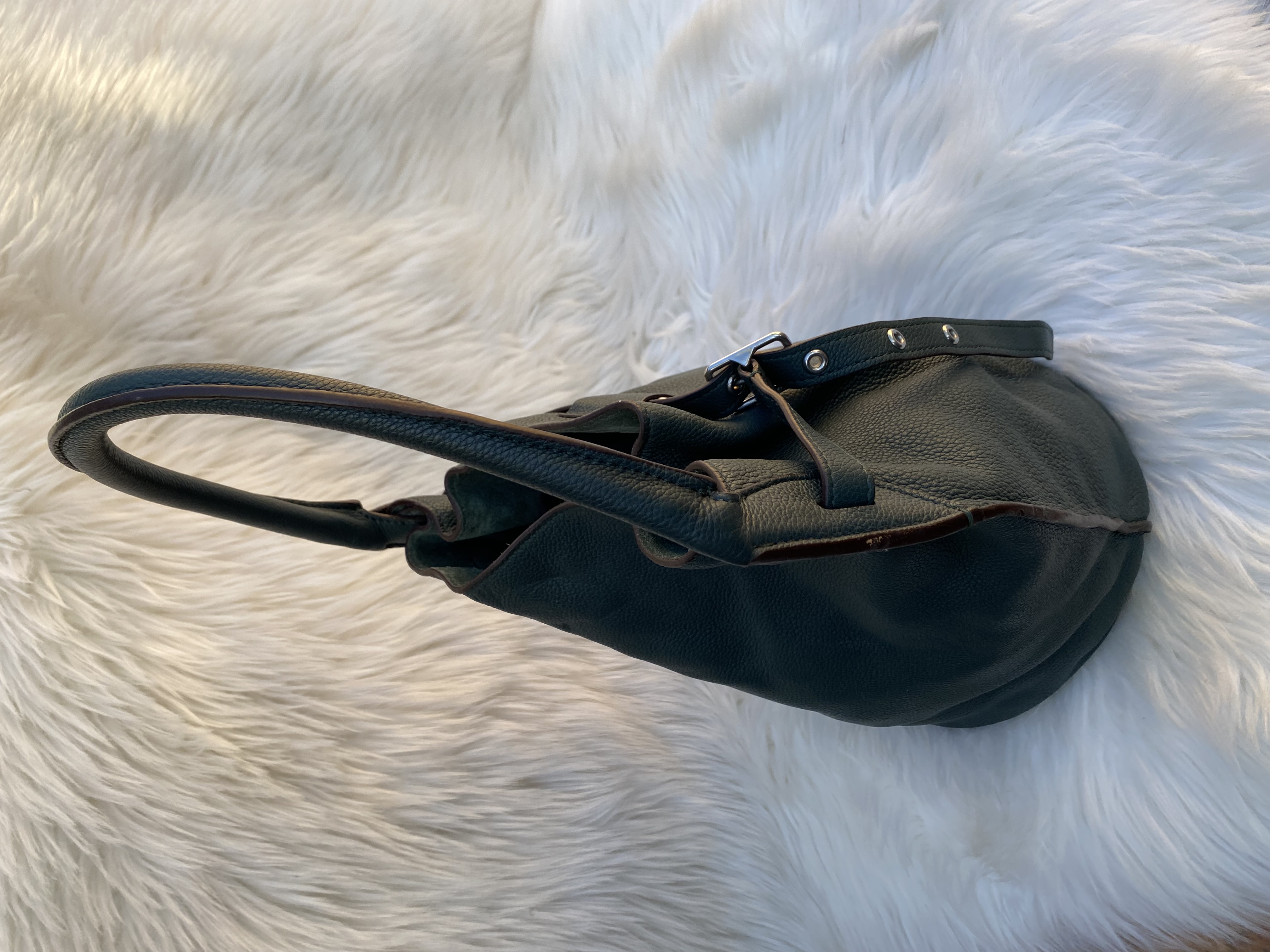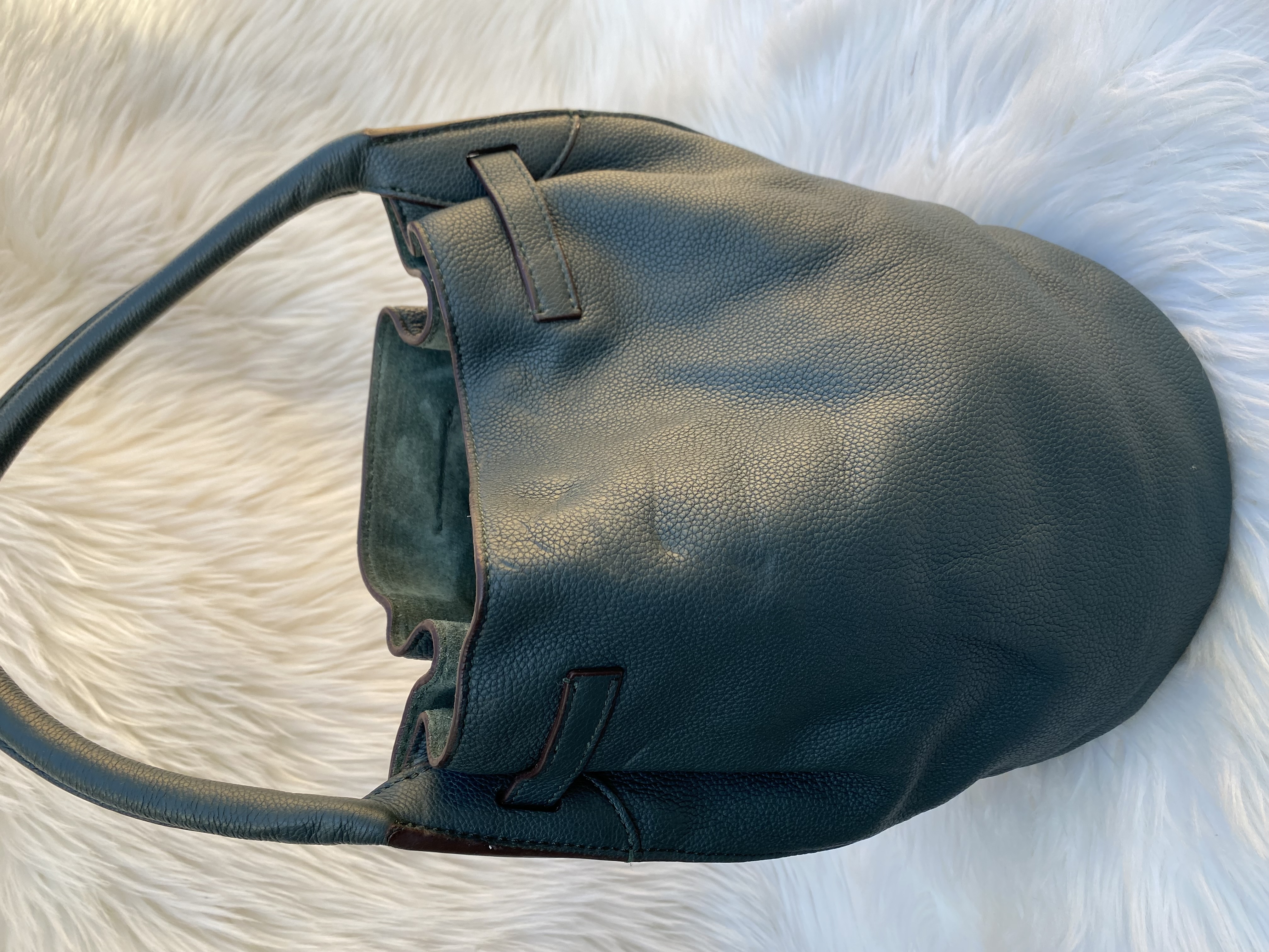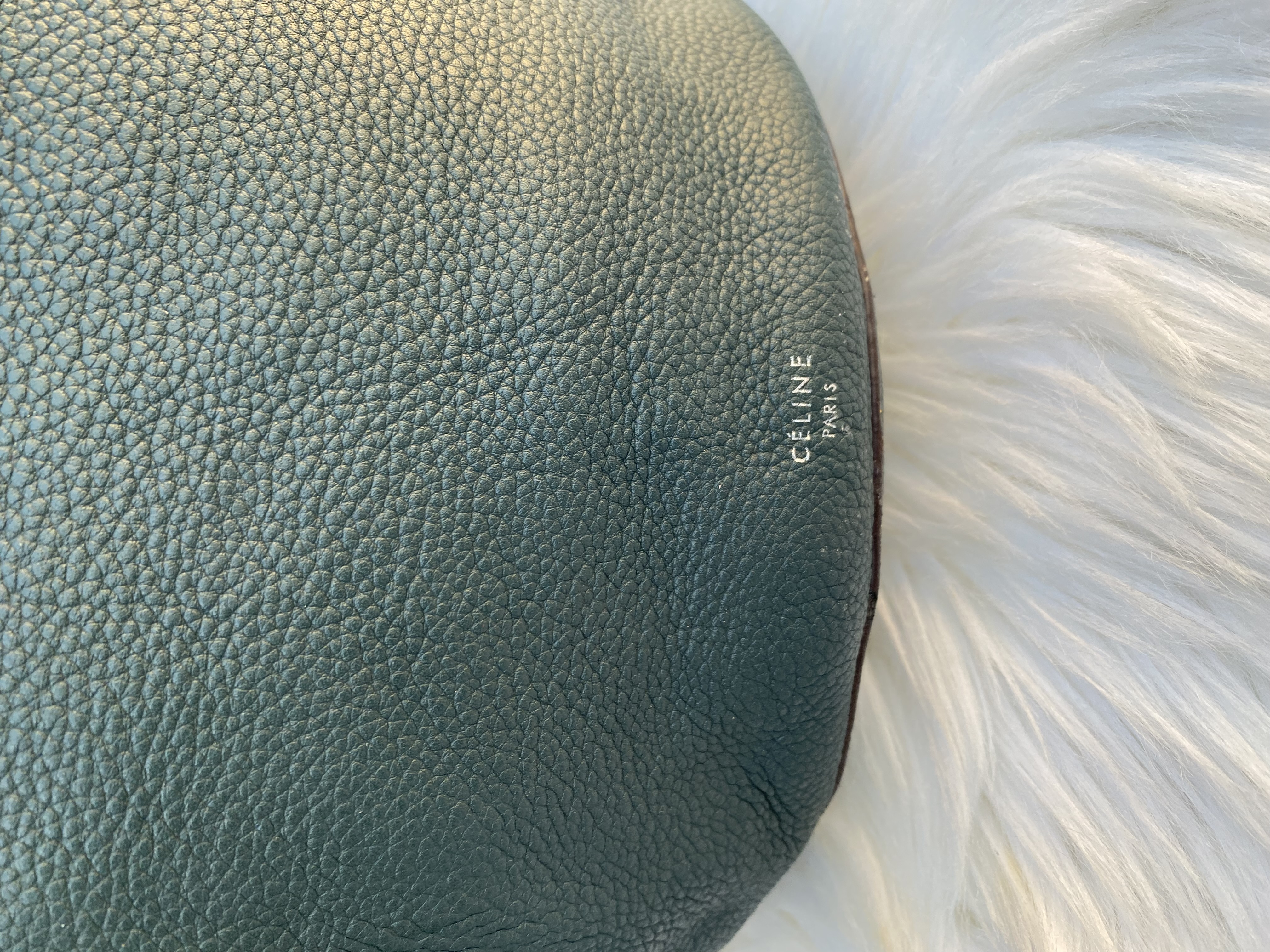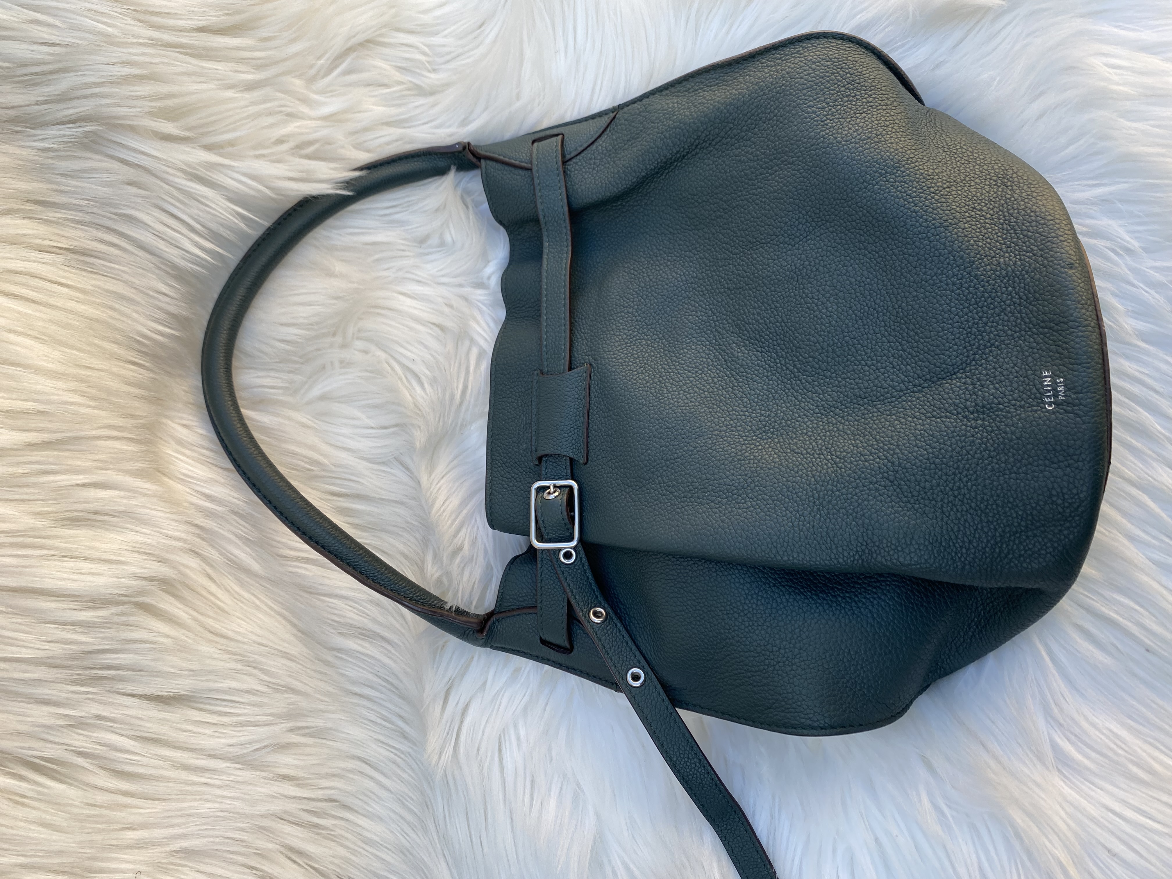 Preloved Celine big bag bucket nano 2way bag in green colour. Good condition. L31cm..H26cm..W20cm.