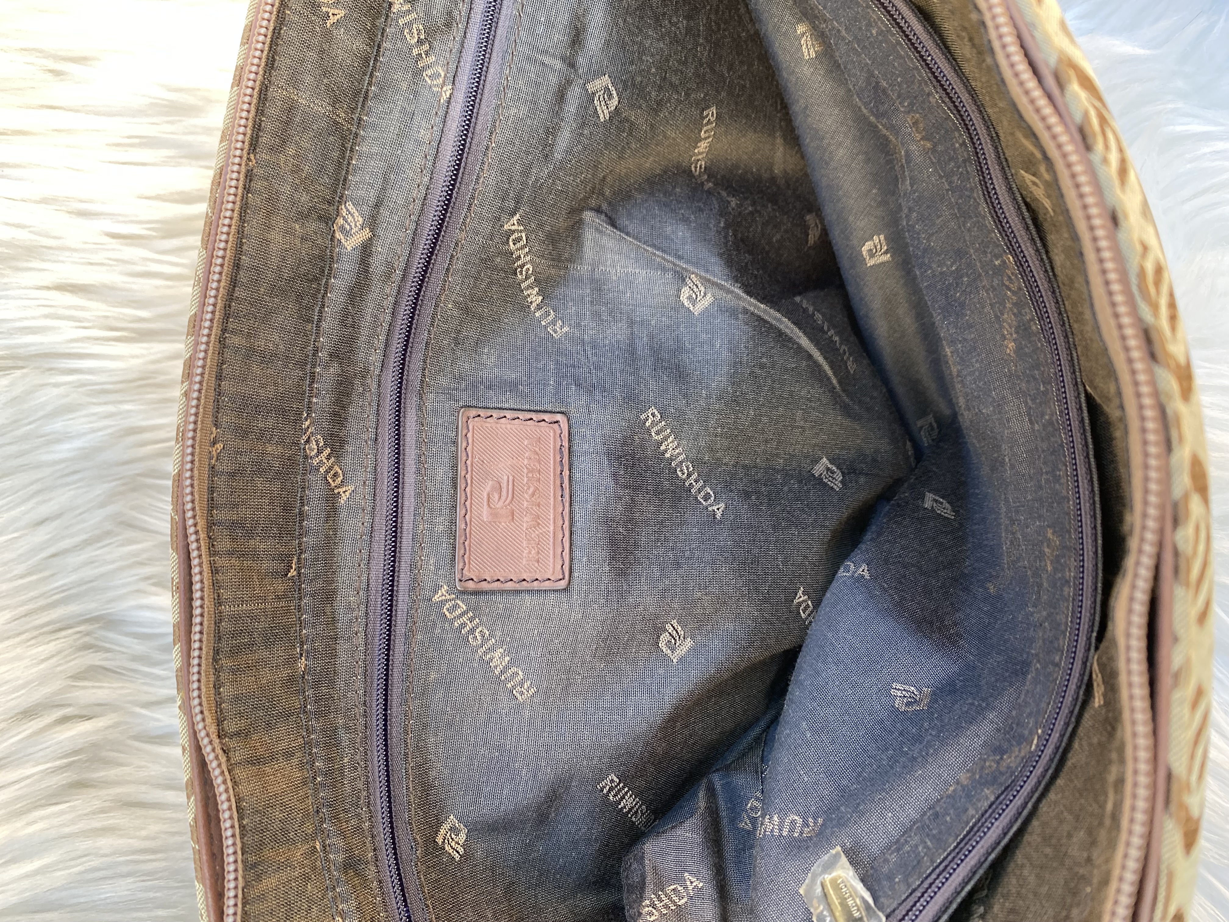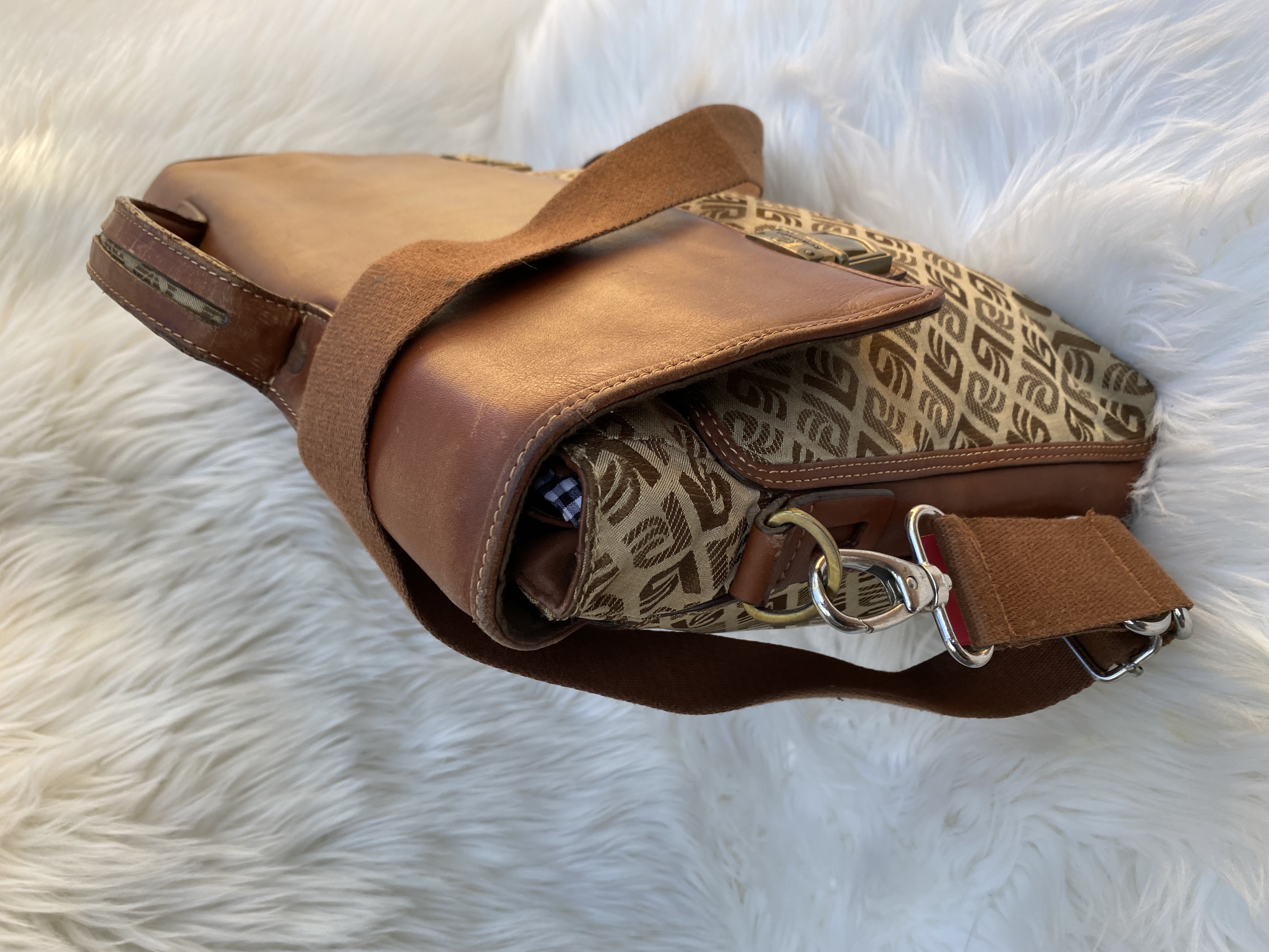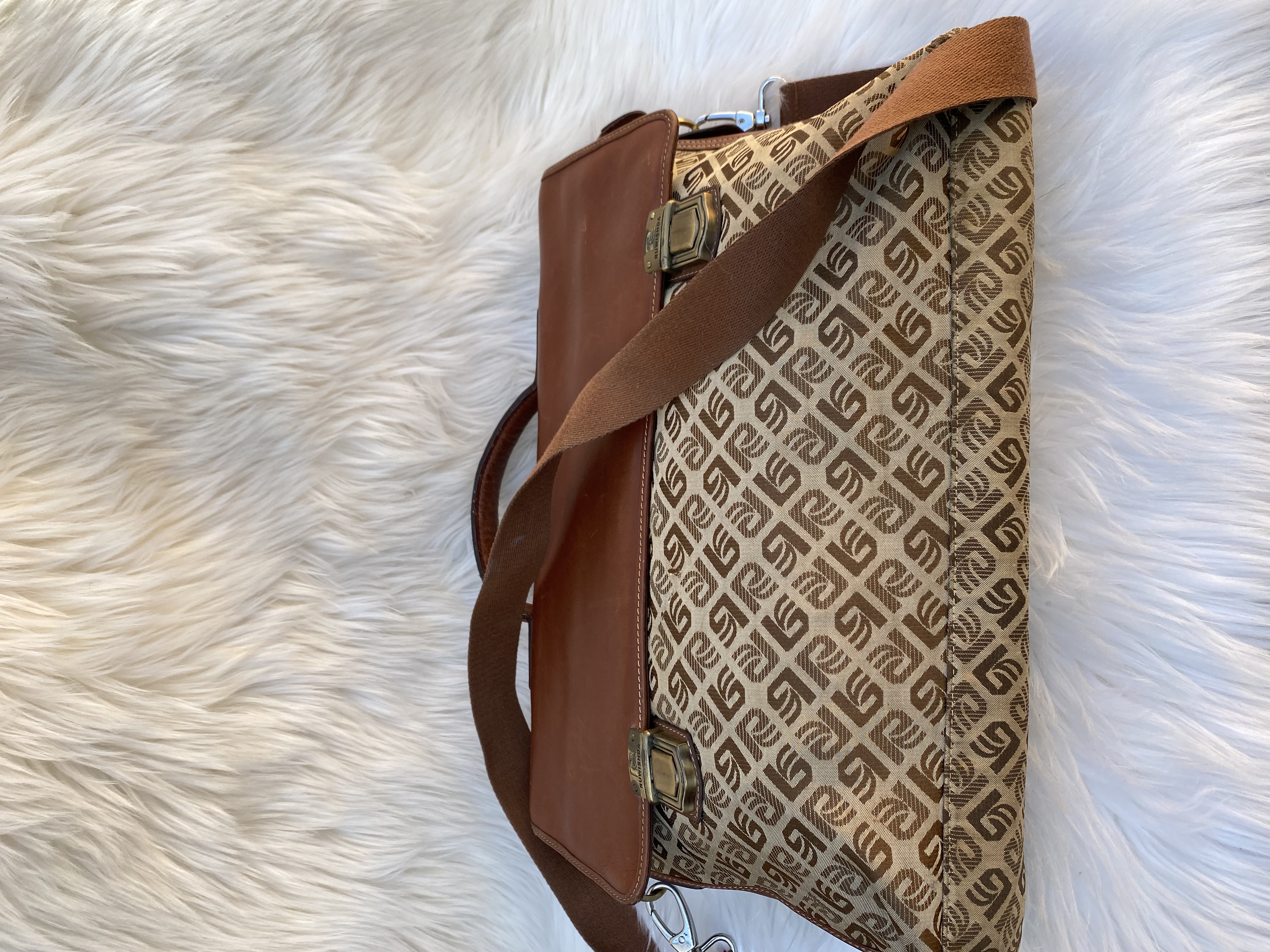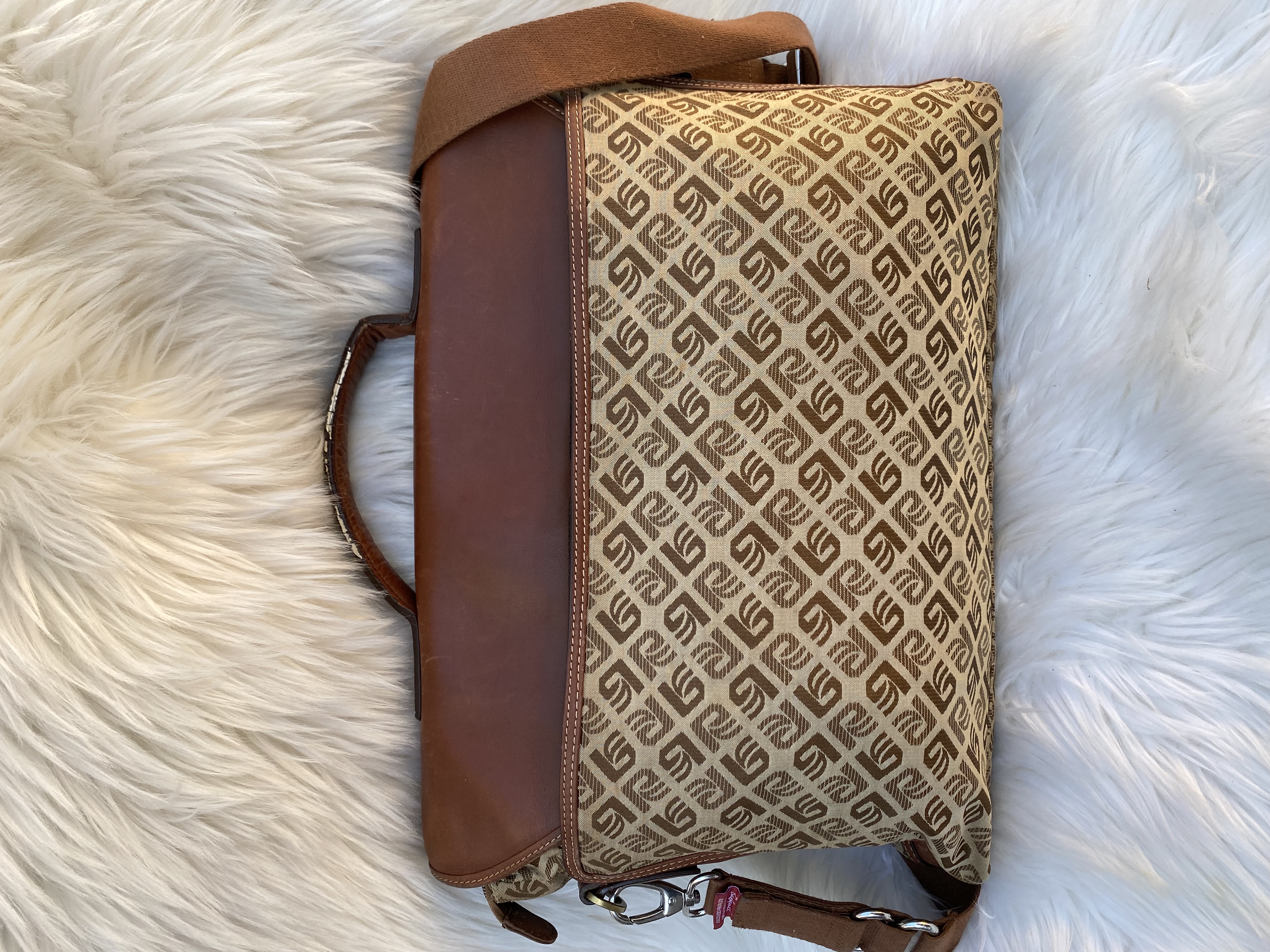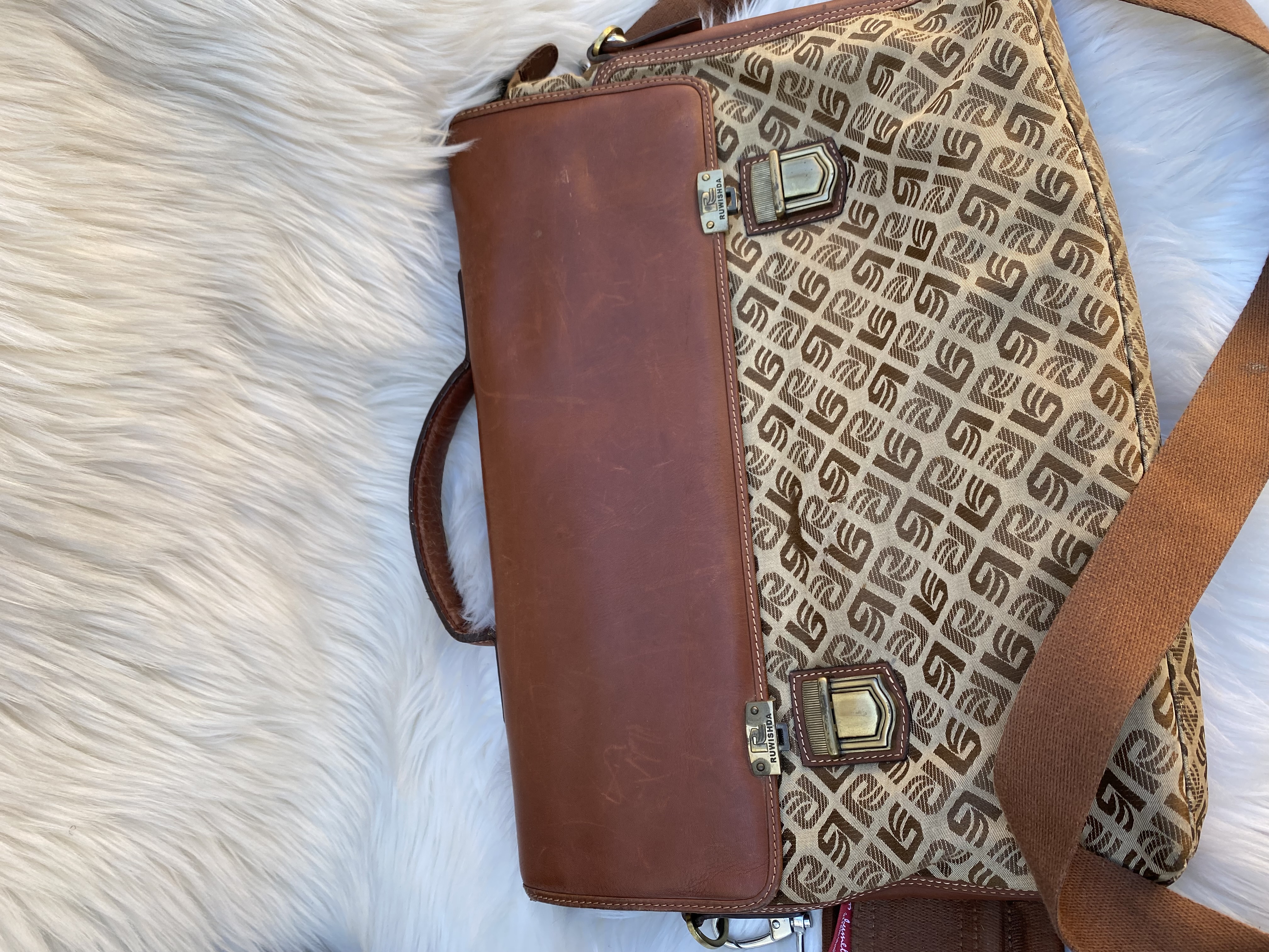 Vintage brown Leather and fabric patterned briefcase bag for business/Laptop bag. Good condition. Medium size. L41cm..H30cm…W10cm.