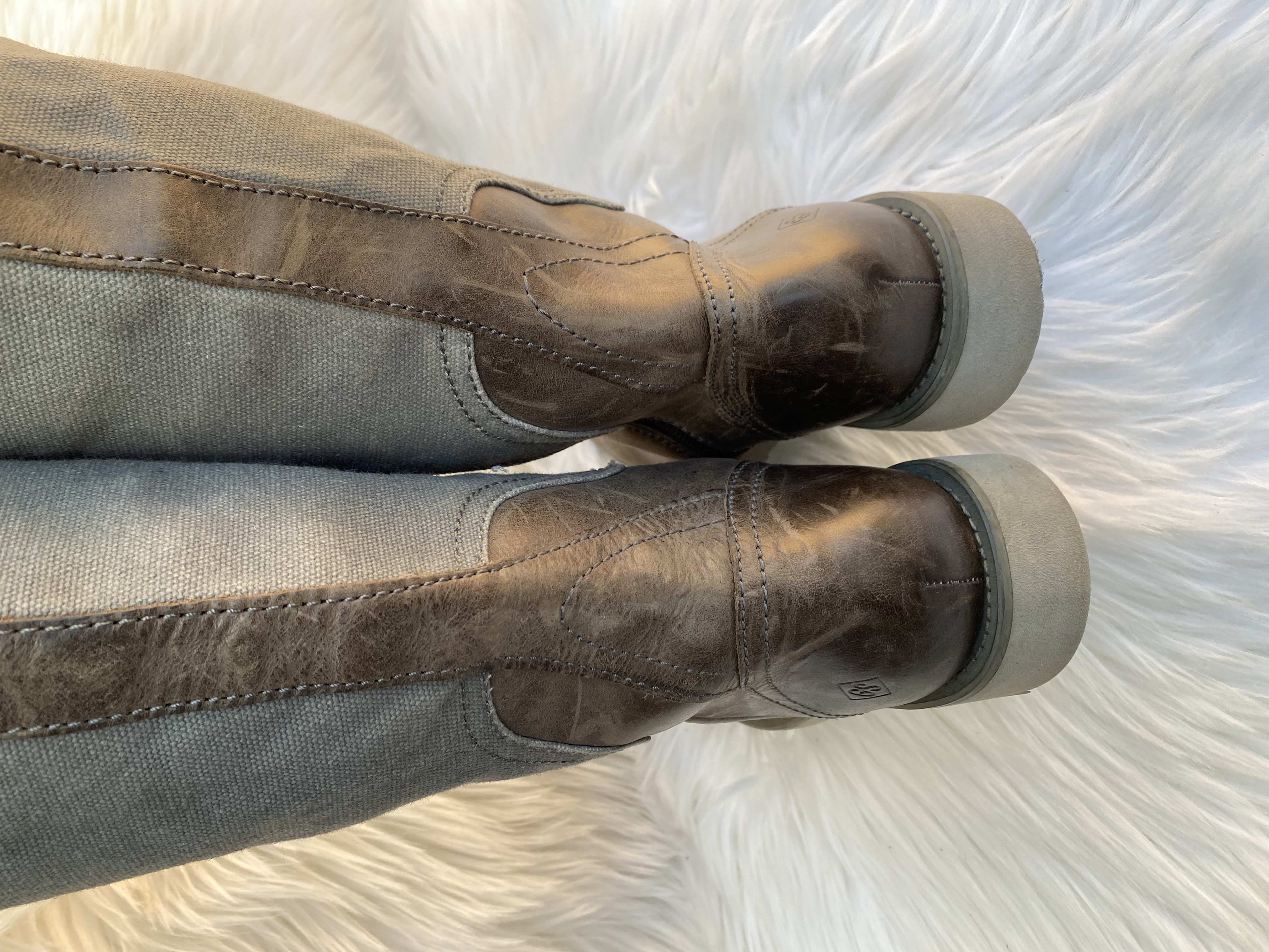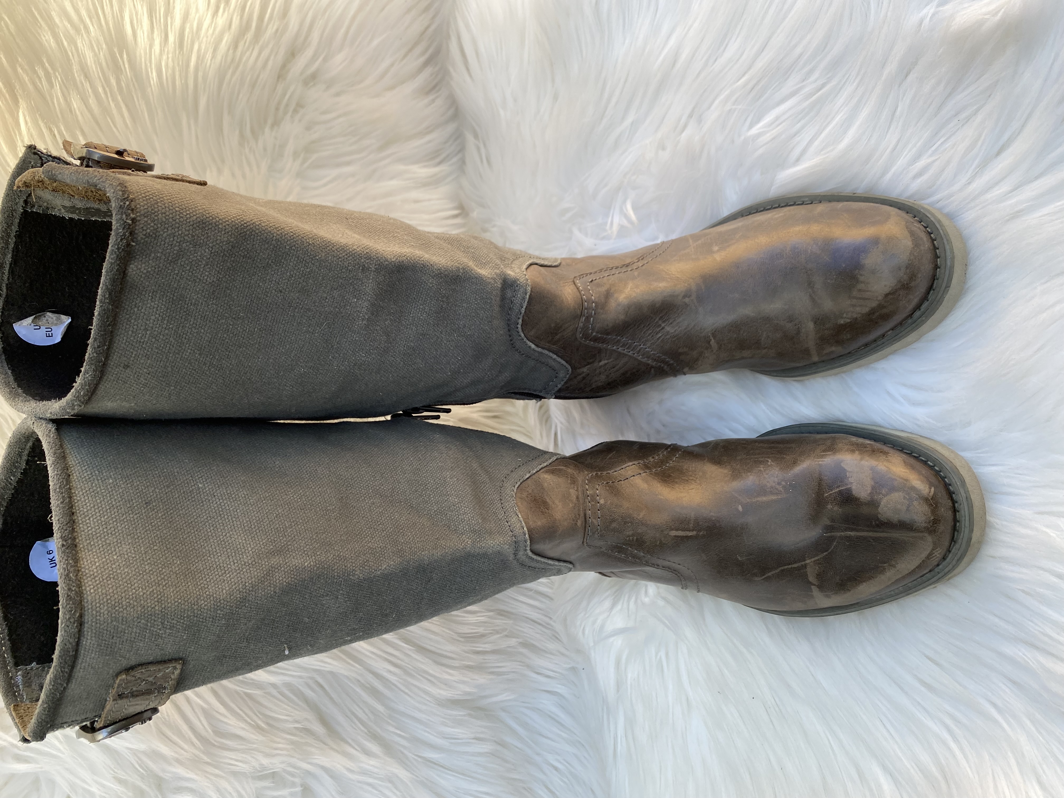Preloved G-star leather boots. Size uk 6. Denim and leather components. Grey colour. Good condition.
