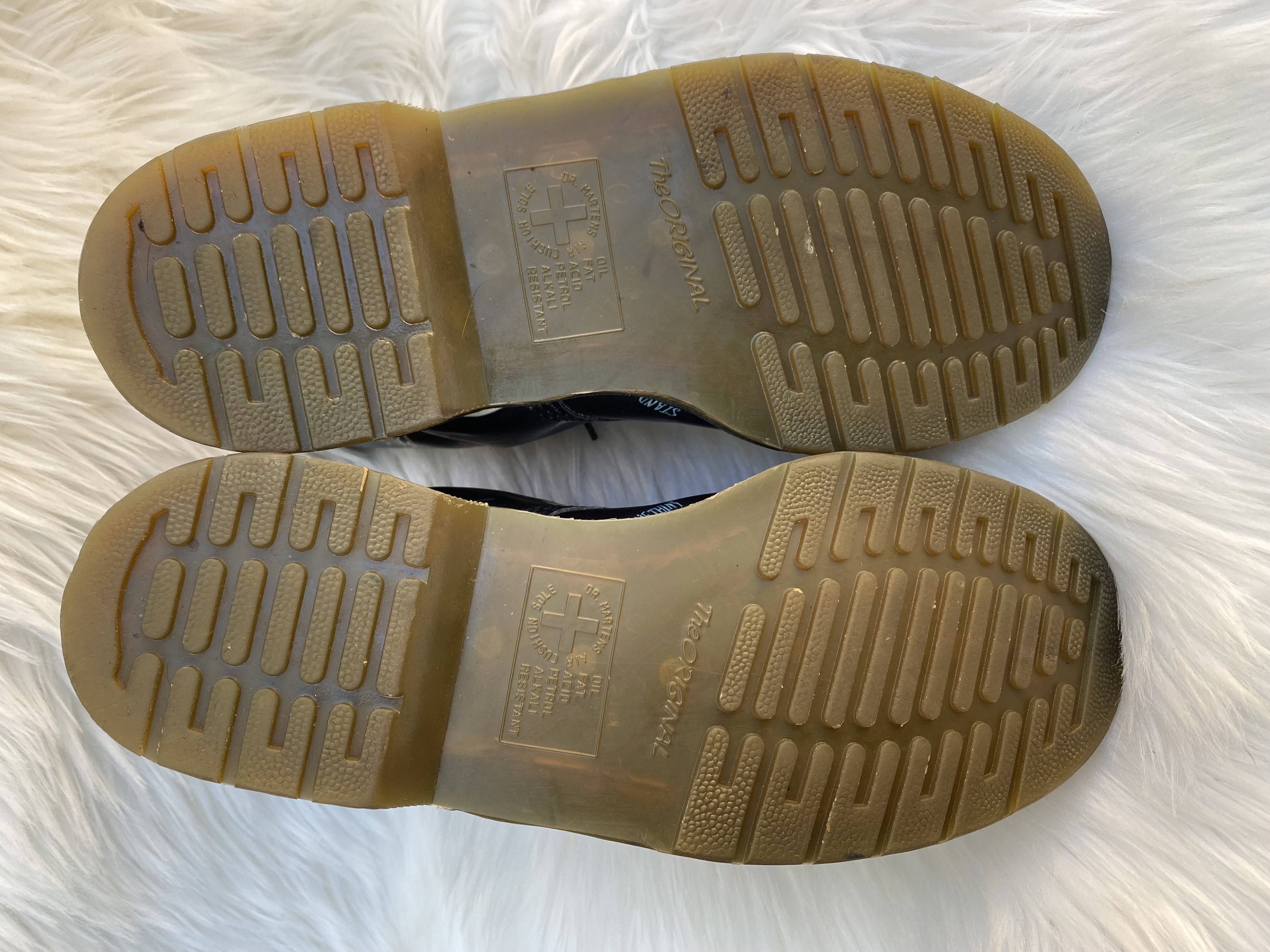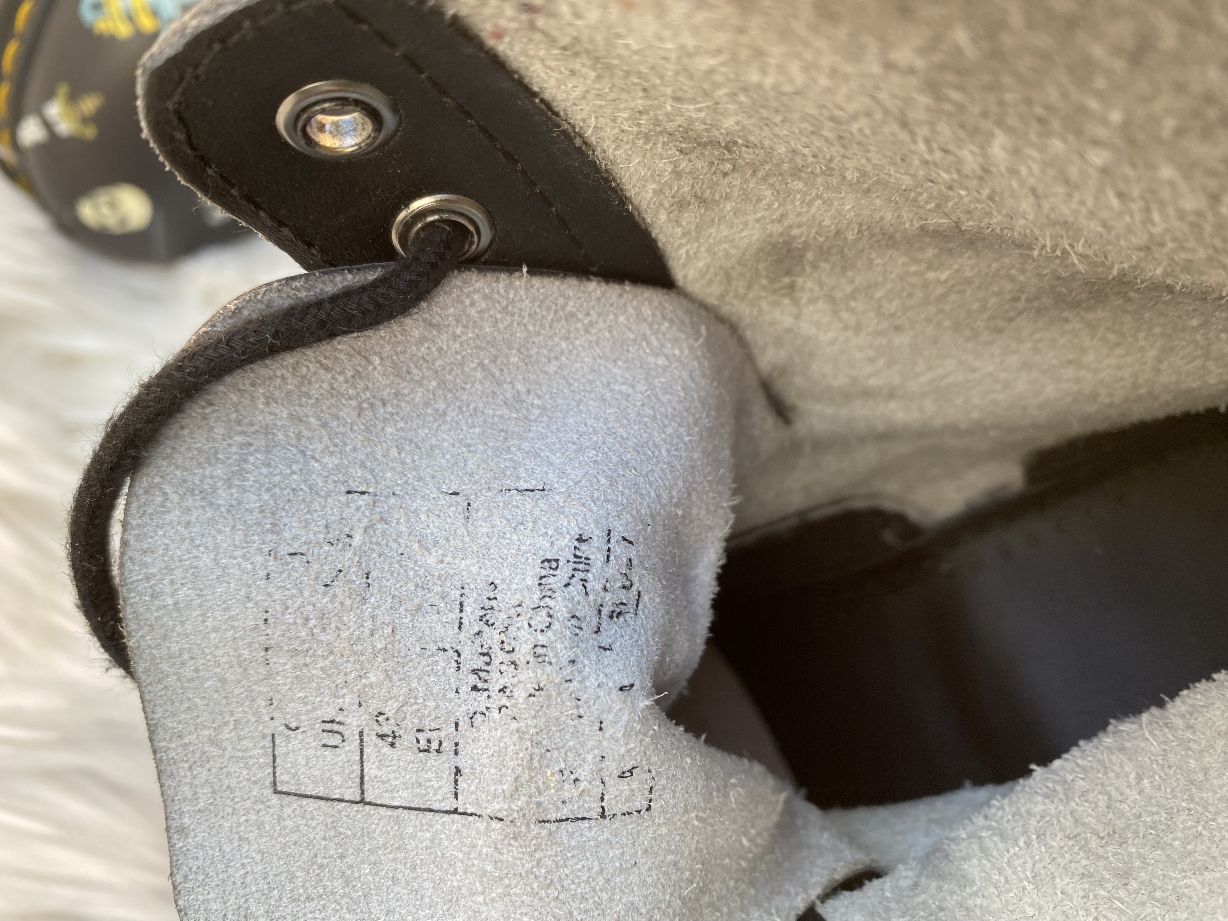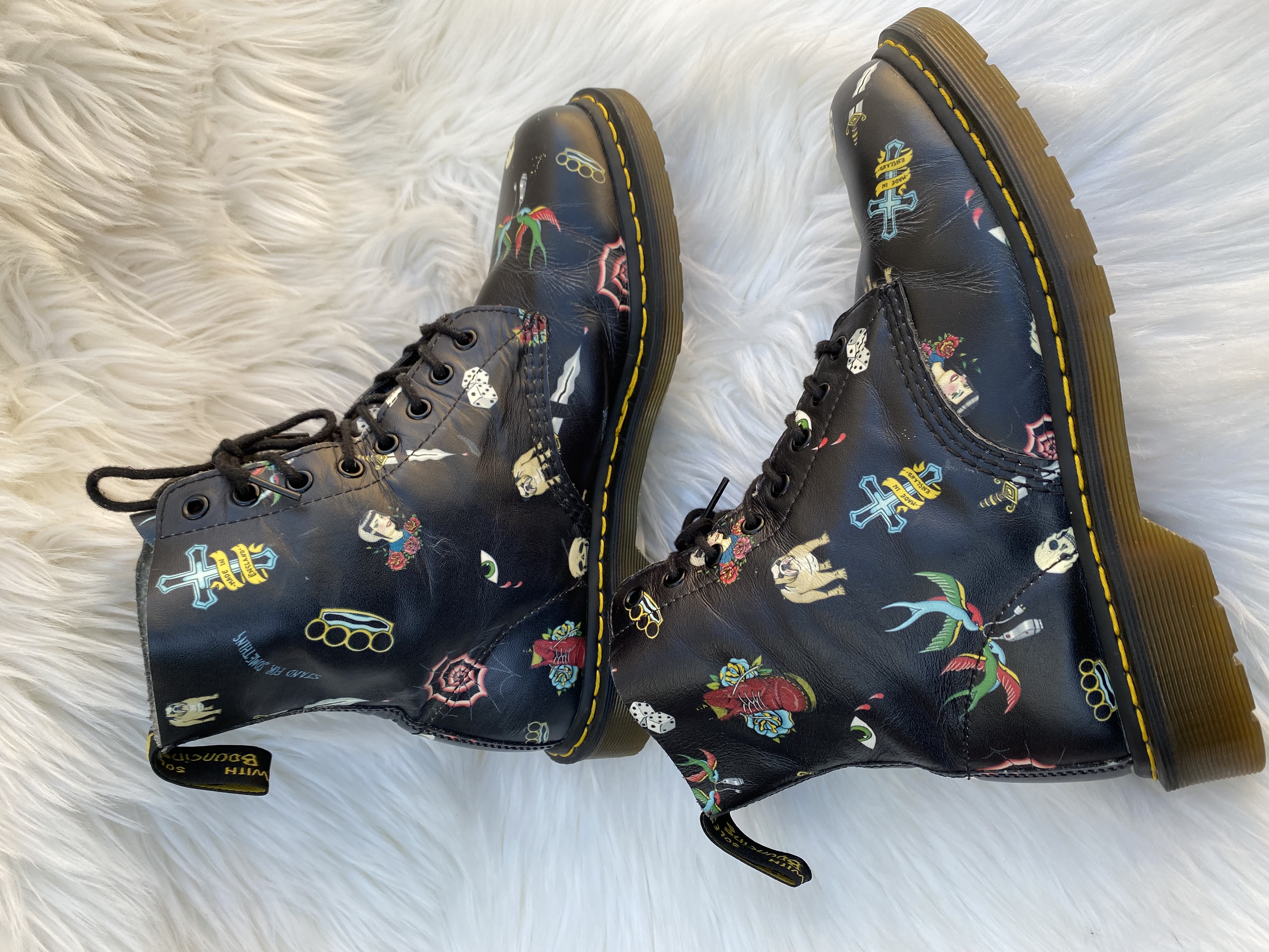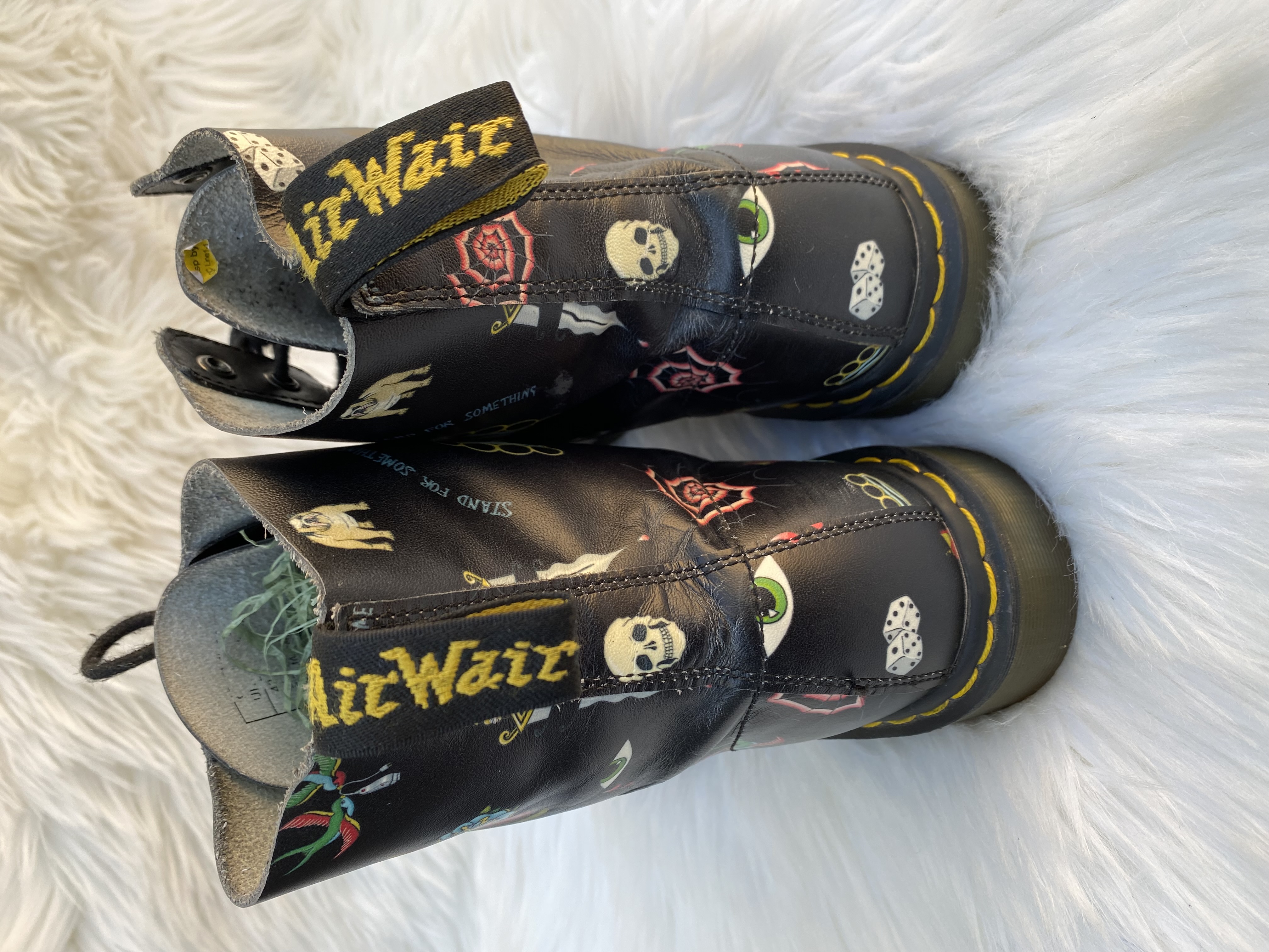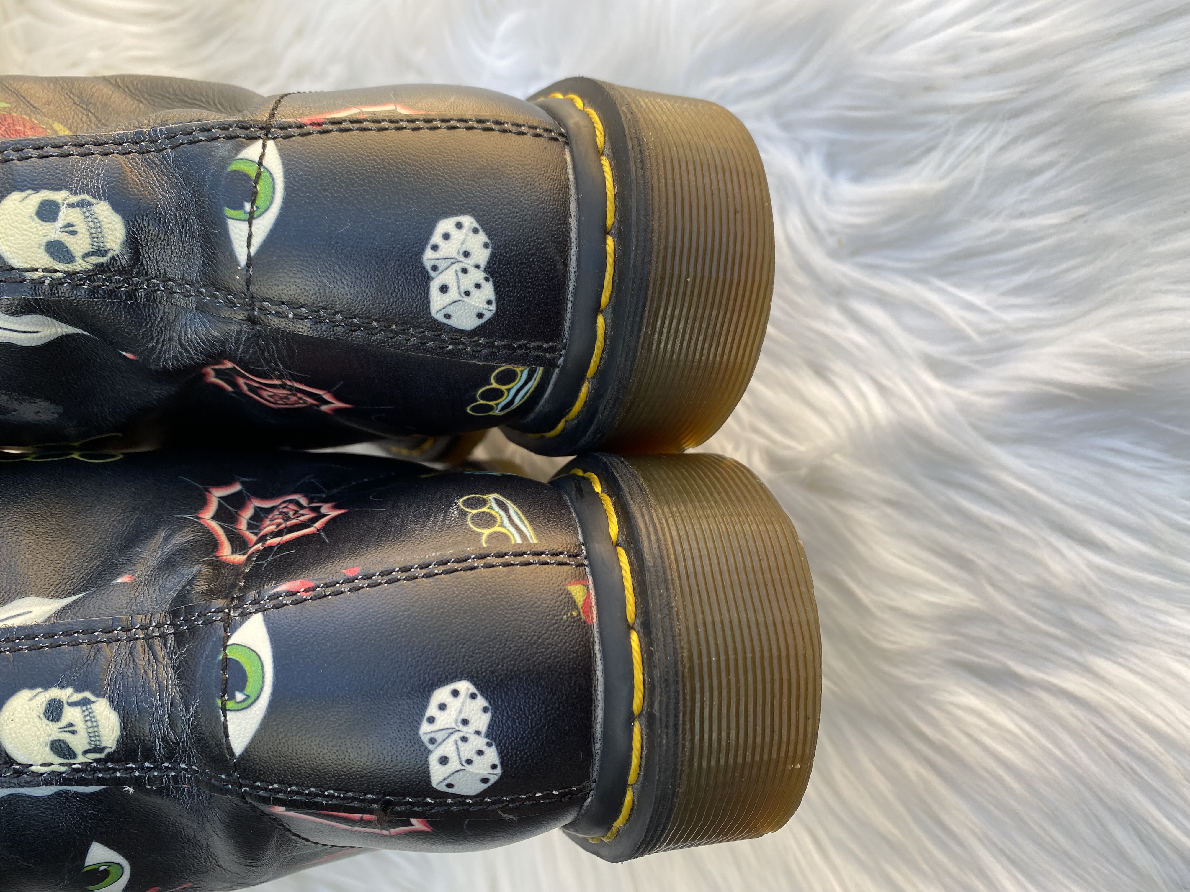 Preloved Dr Martens 1460 skull and 8-eyes tattooed leather boot. Unisex, size uk 8.