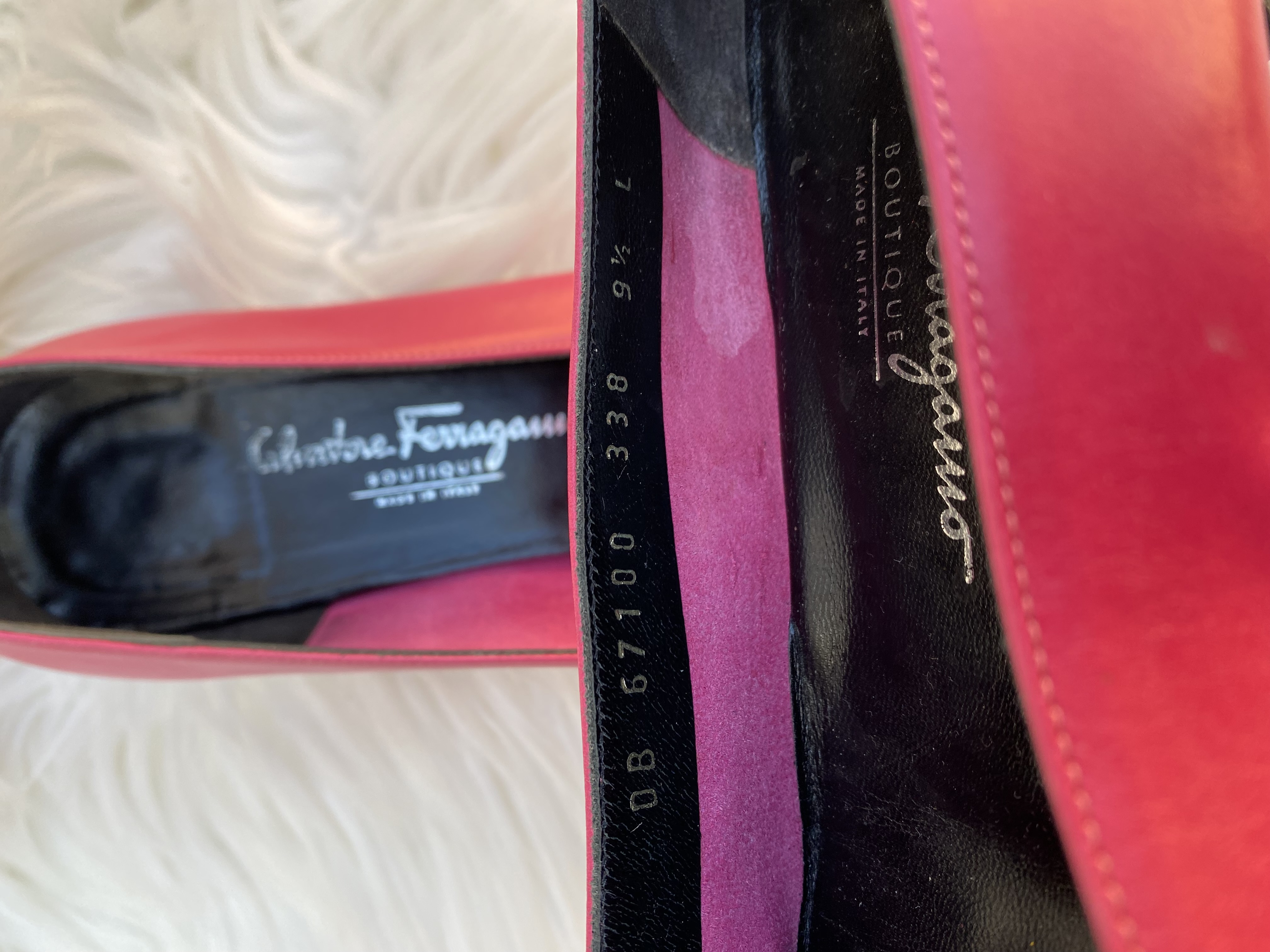 Preloved Salvatore Ferragamo pump block heel shoes. Size uk 7. Good condition. Pink colour.