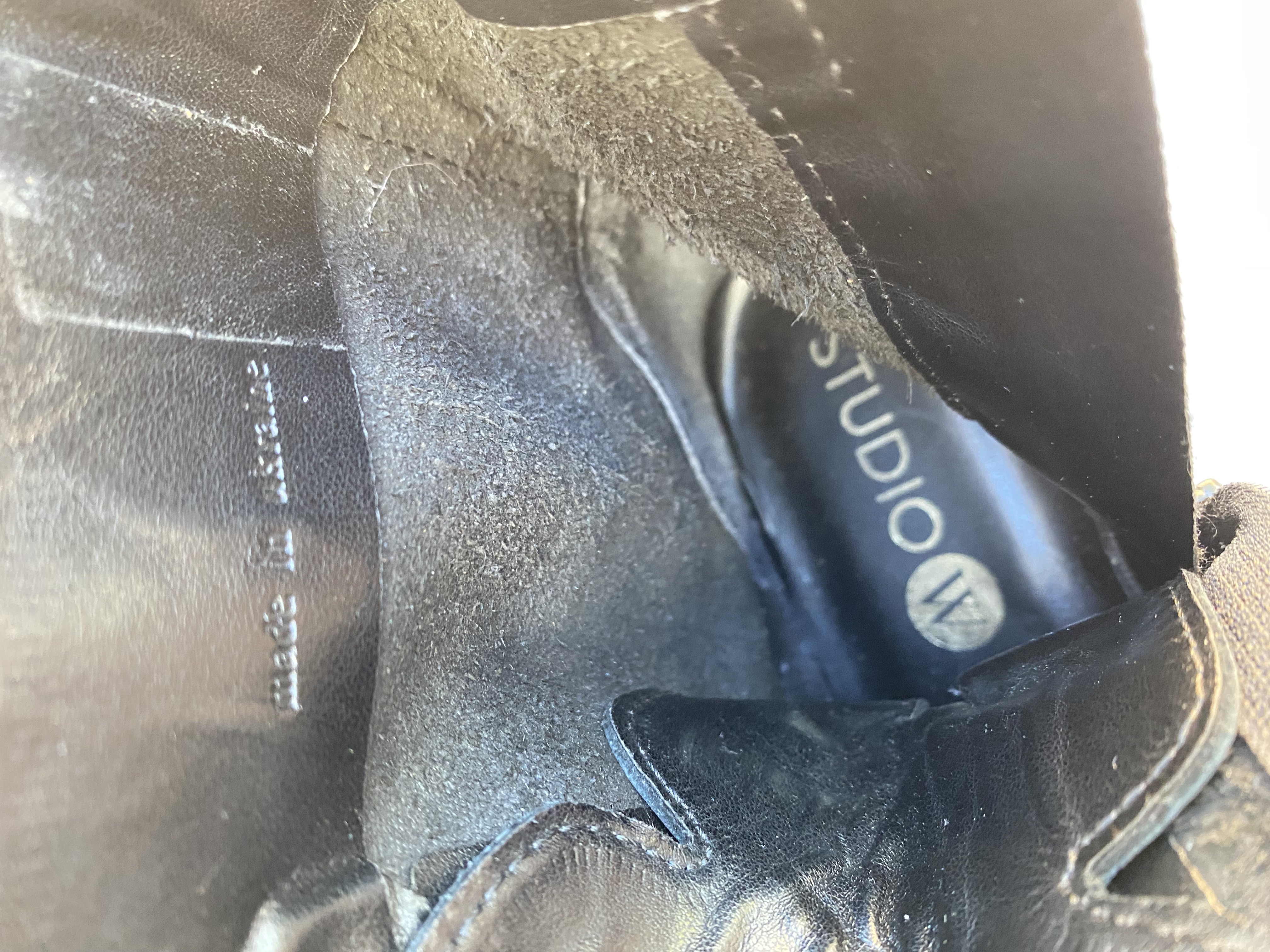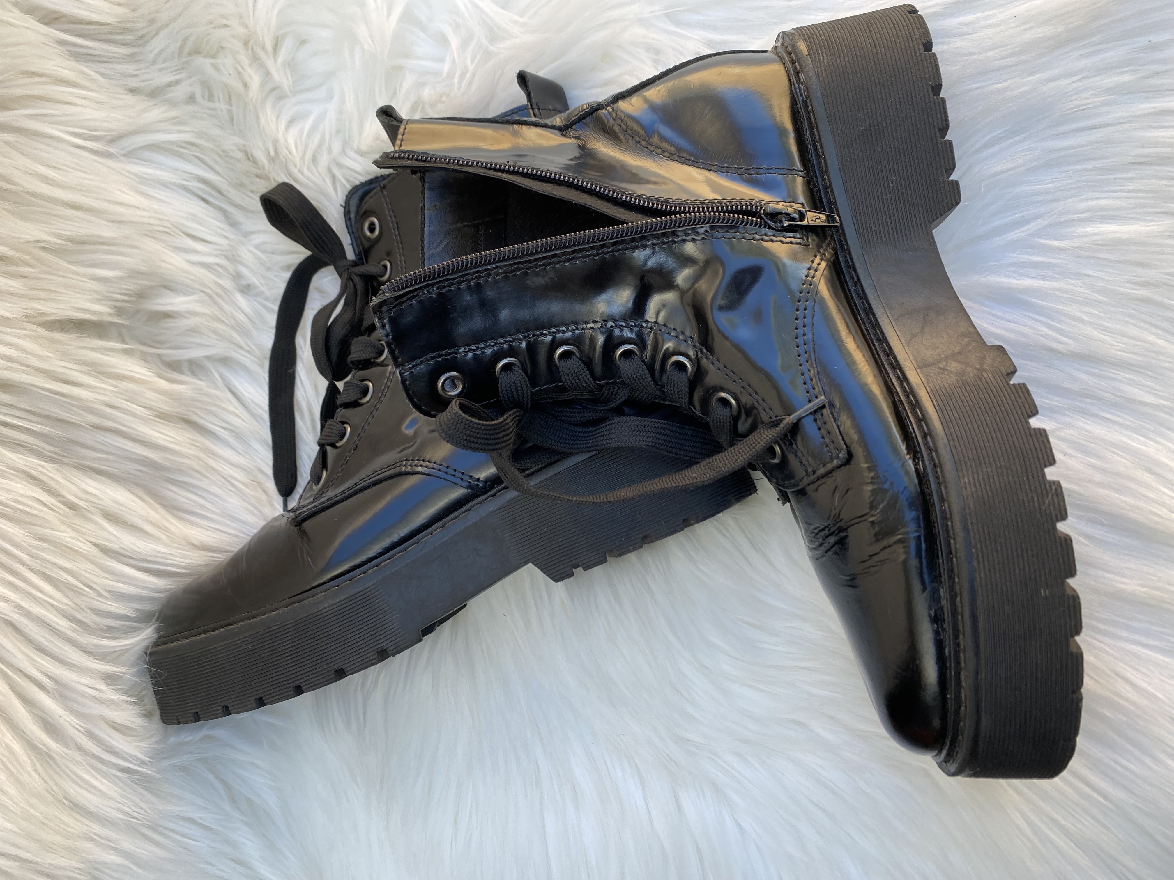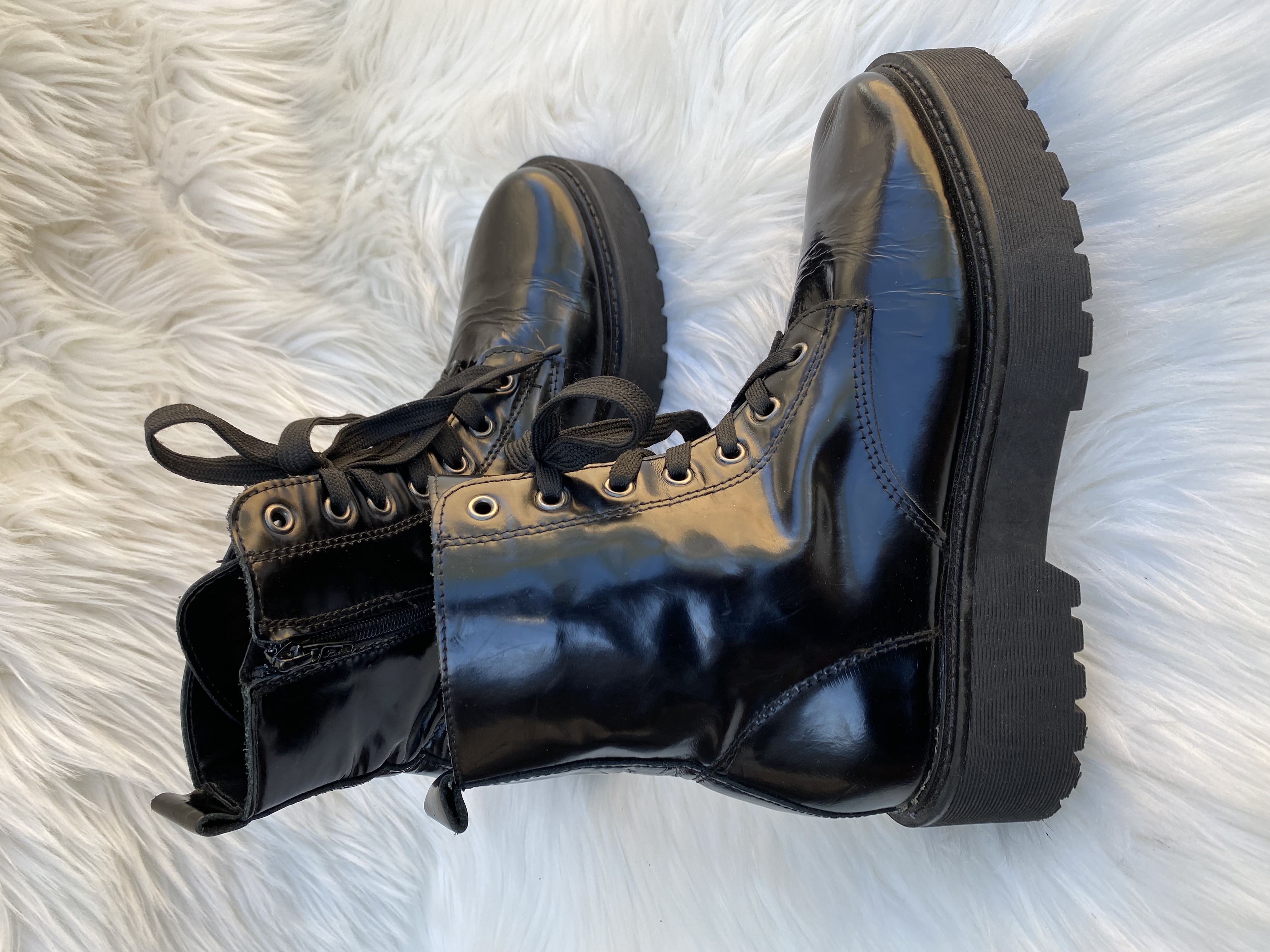 Carefully worn Studio patent leather ankle-high boots with chunky sole. Size uk 6. Good condition. Black colour.