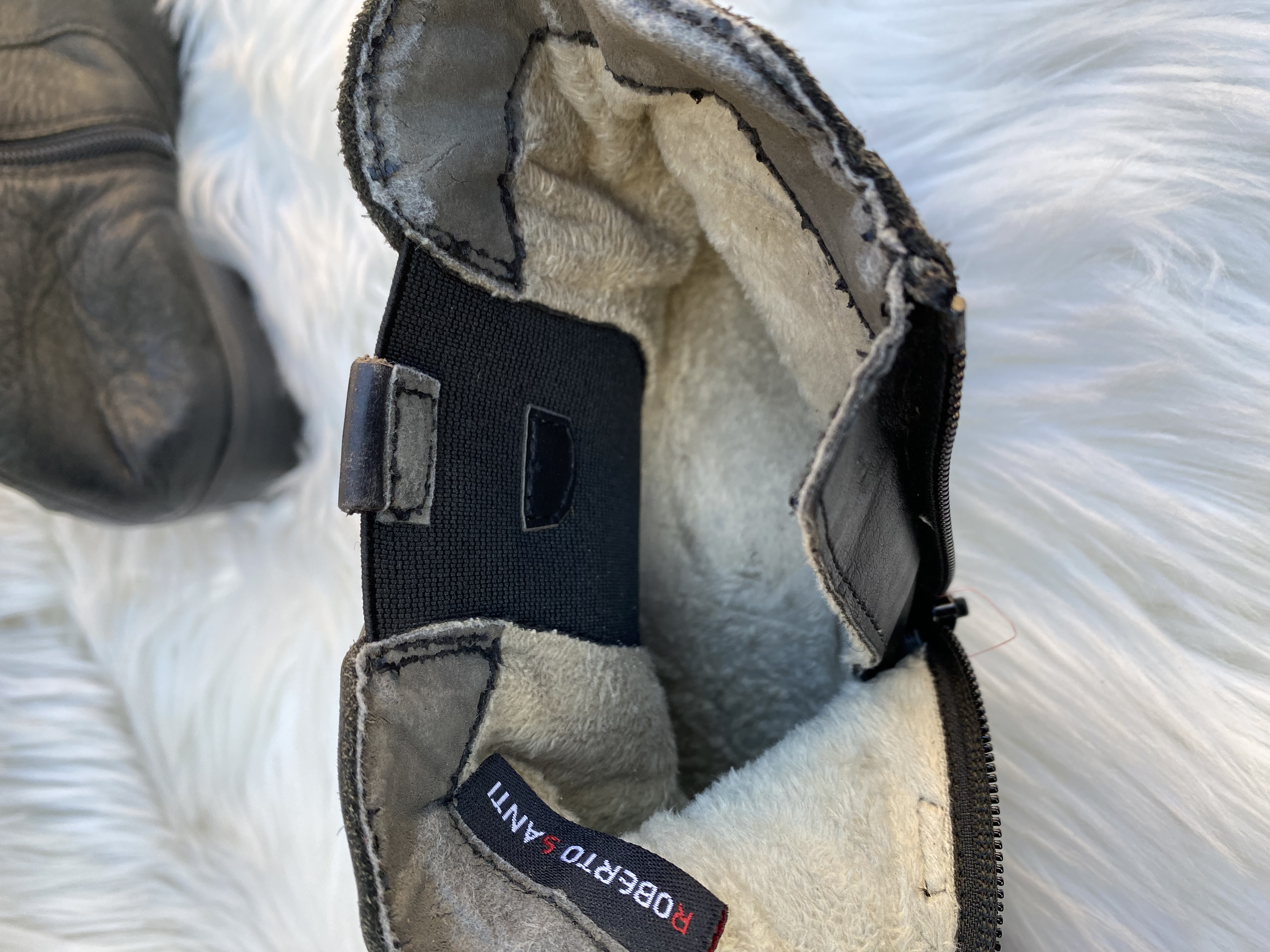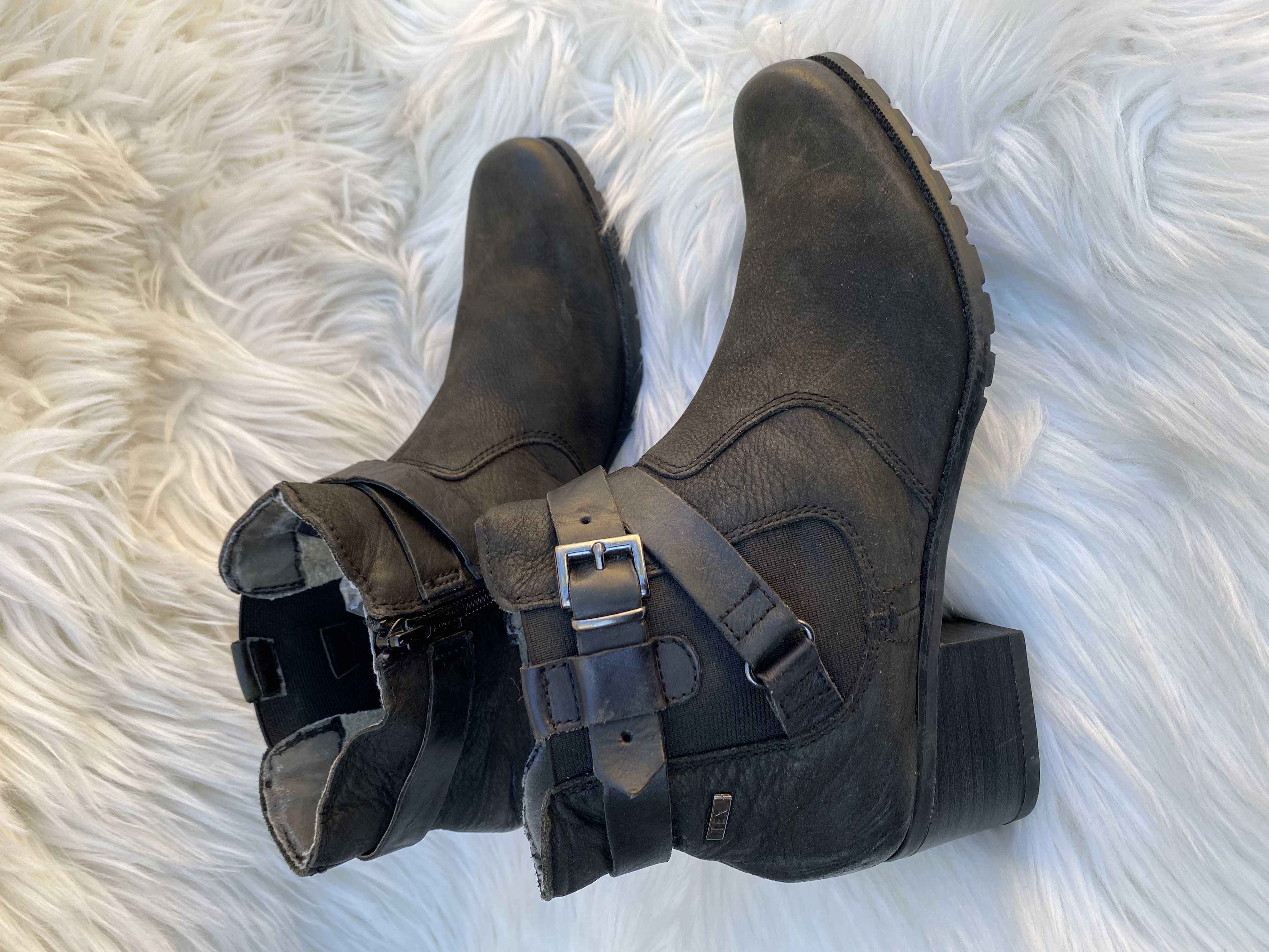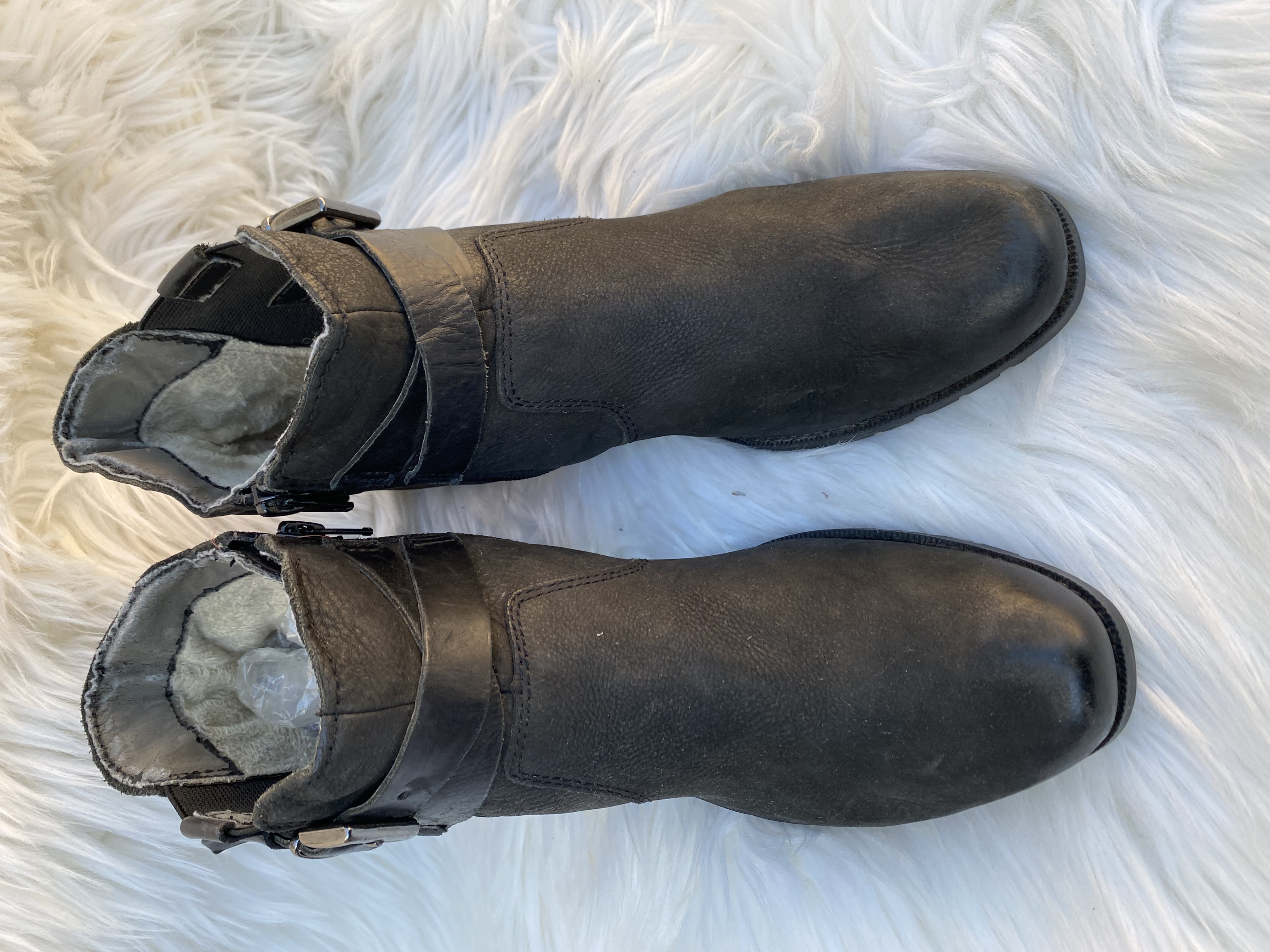 Genuine Nubuck leather ankle high leather boots featuring block heel. Size uk 6.5. Good condition. Black colour.
