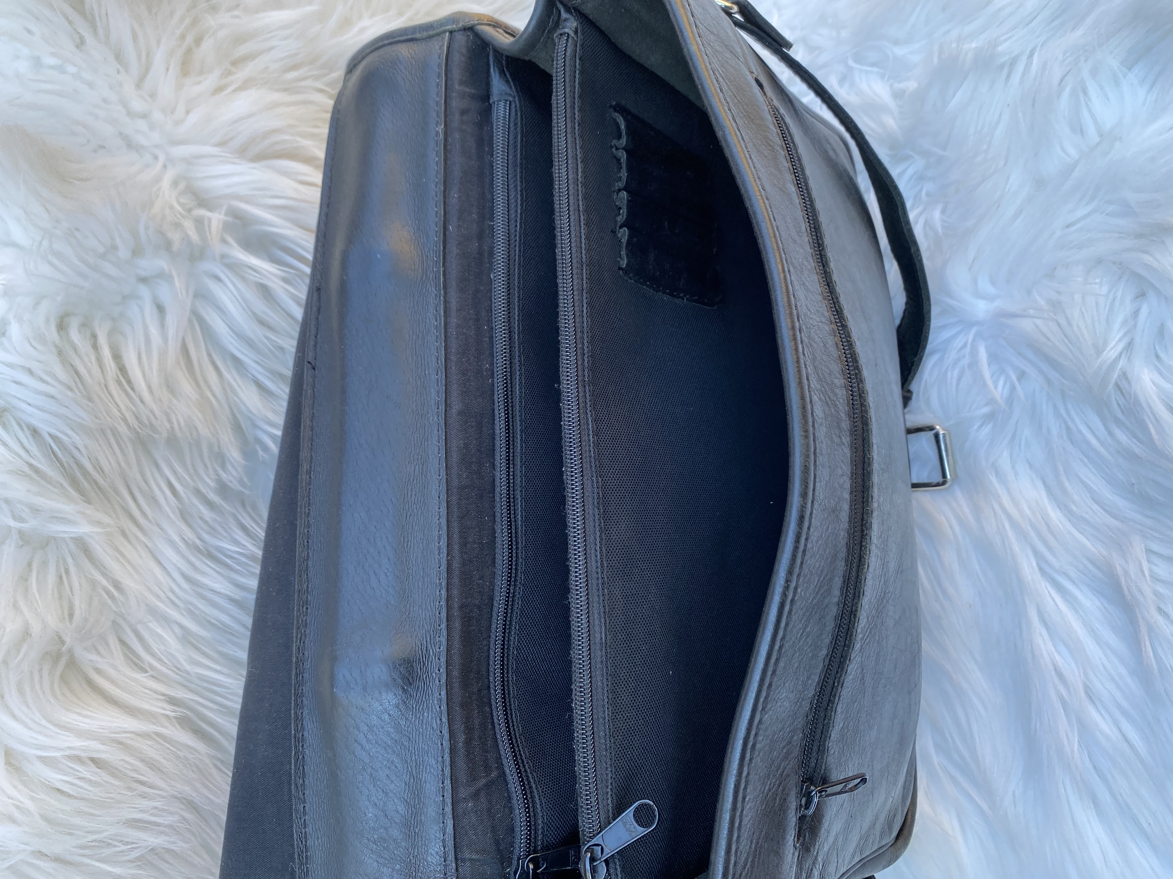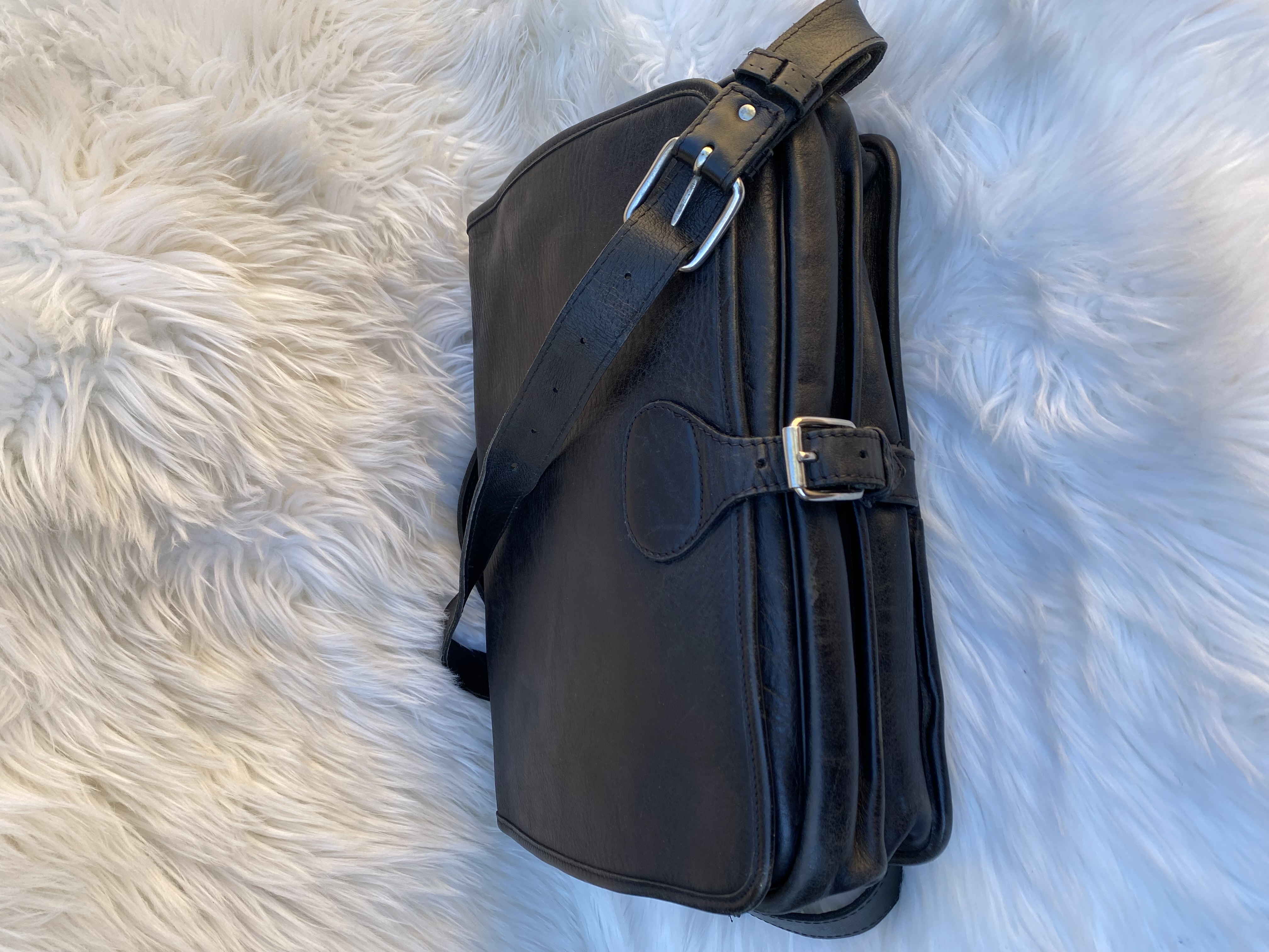 Genuine leather men’s work/laptop bag, suitable for laptop, file documents. Good condition. Natural Leather. Black colour.