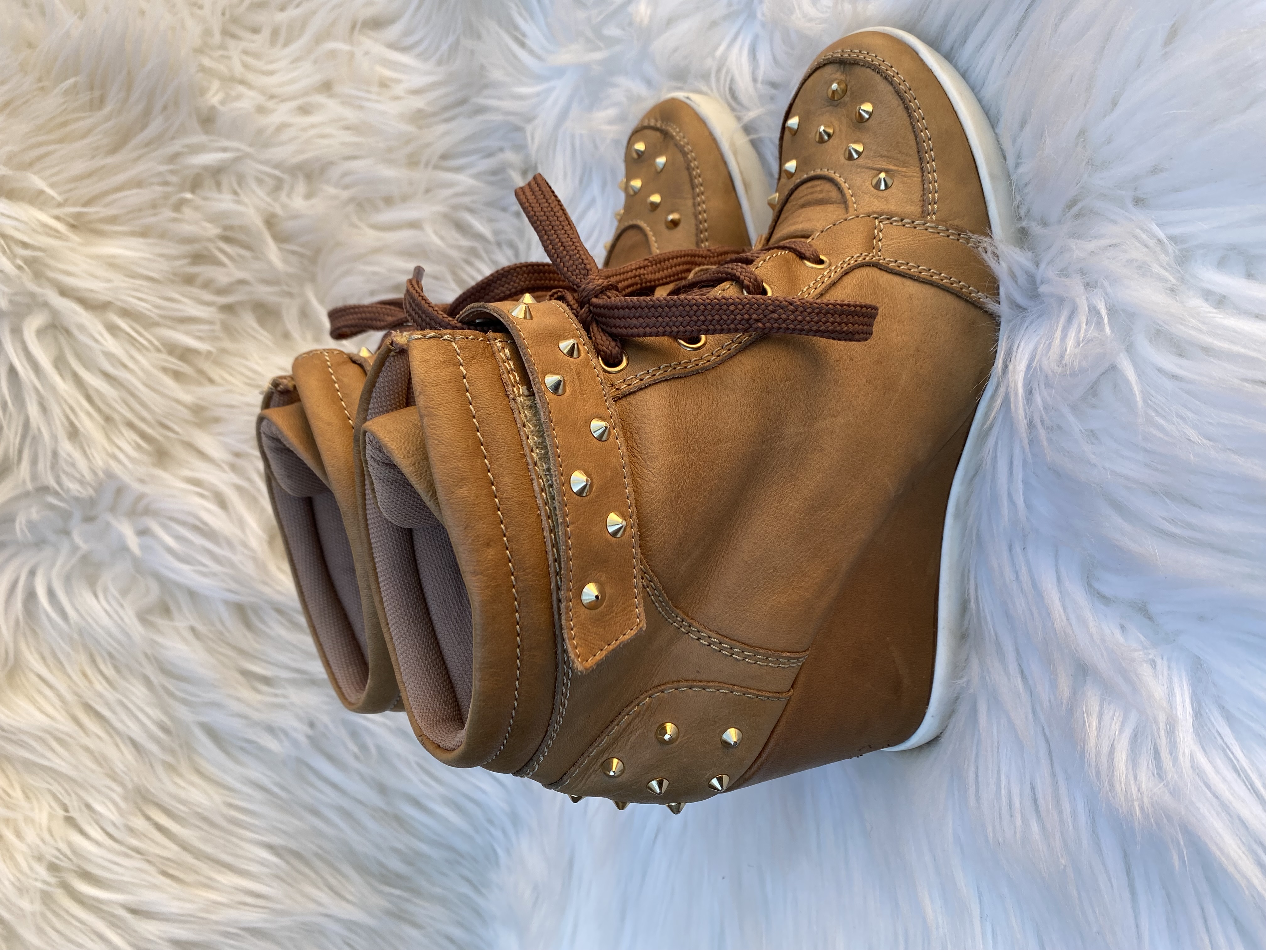 Texco genuine leather wedge sneakers, size EU 40, Uk 6.5. Good condition. Brown colour.