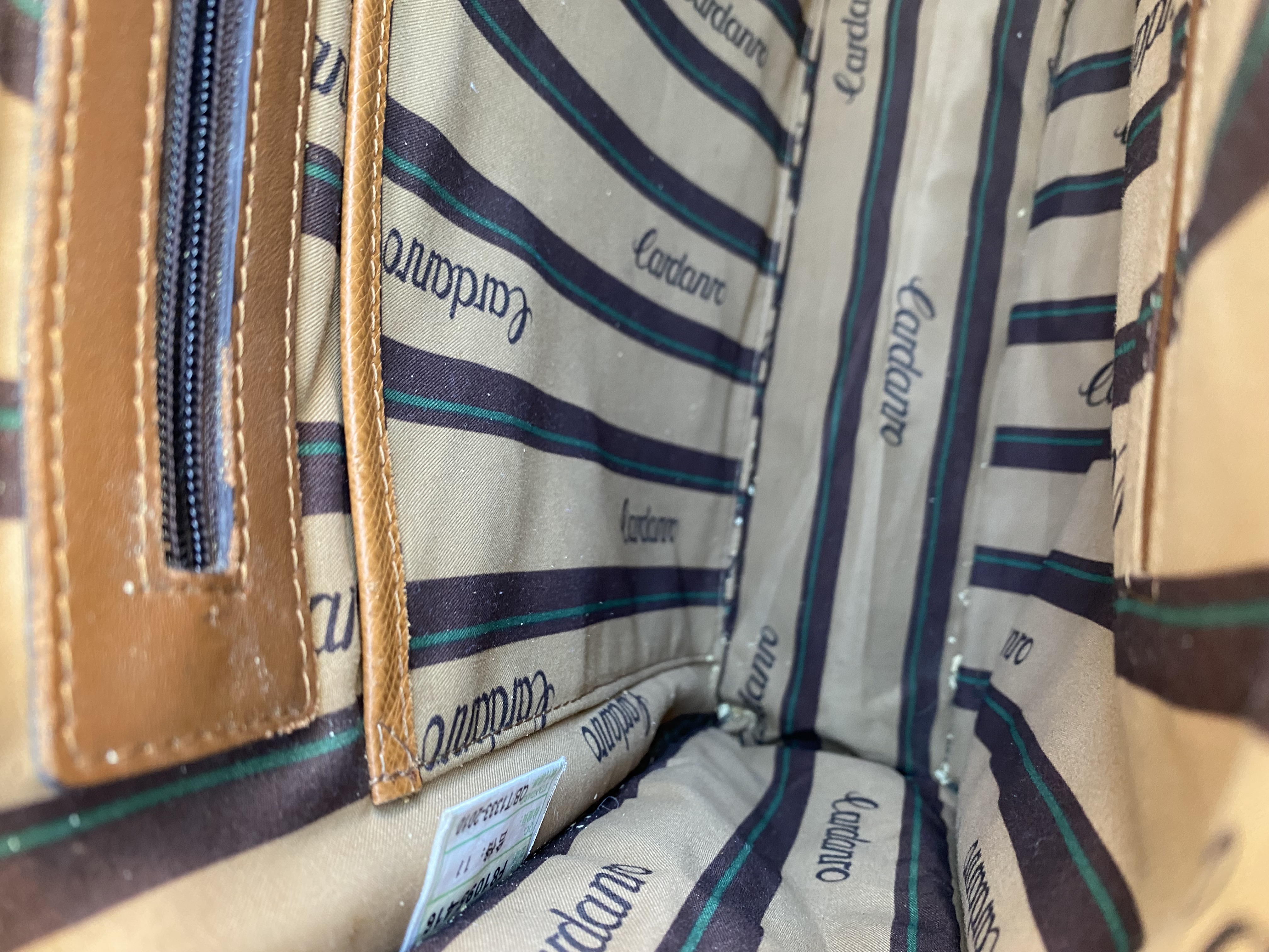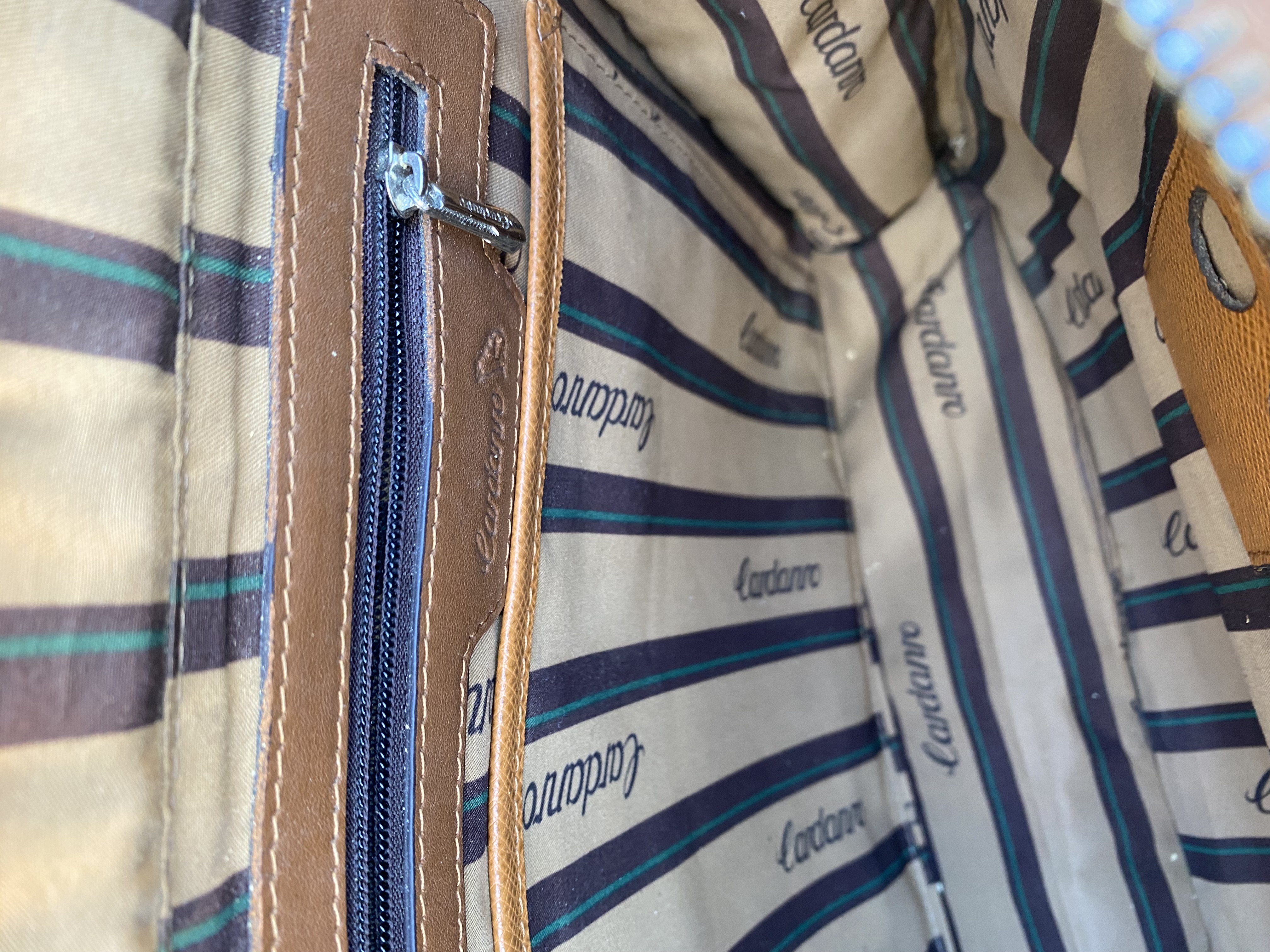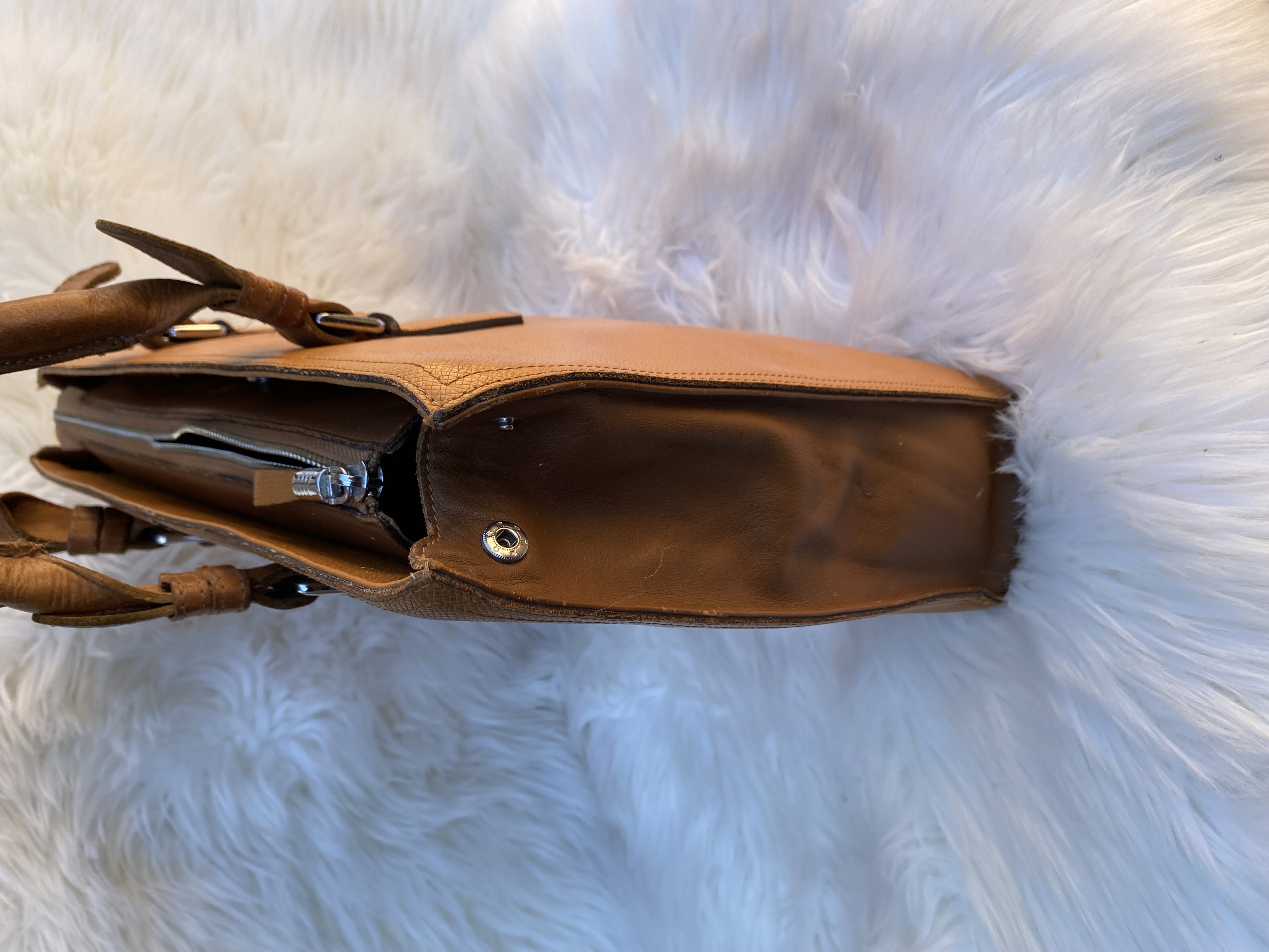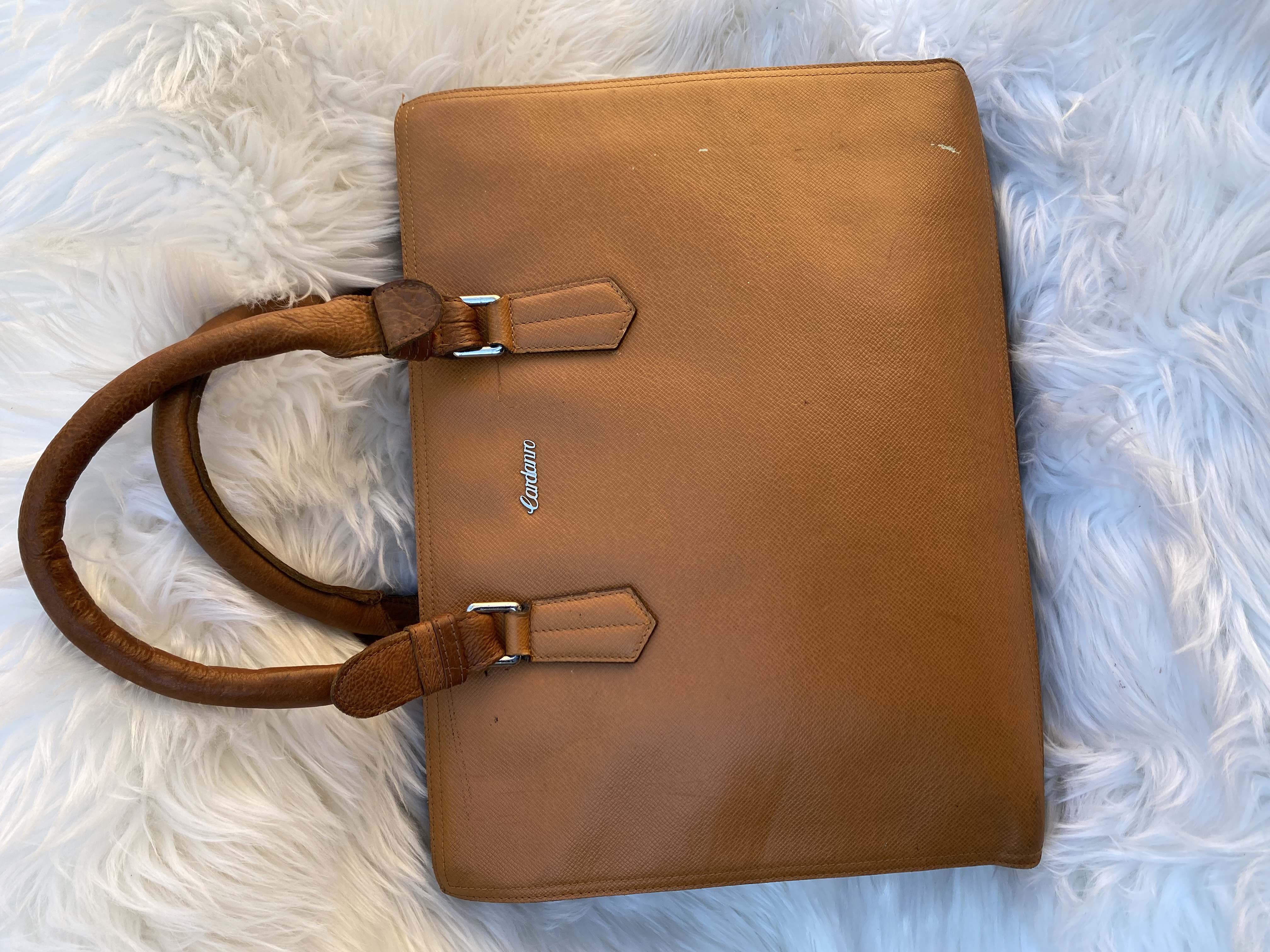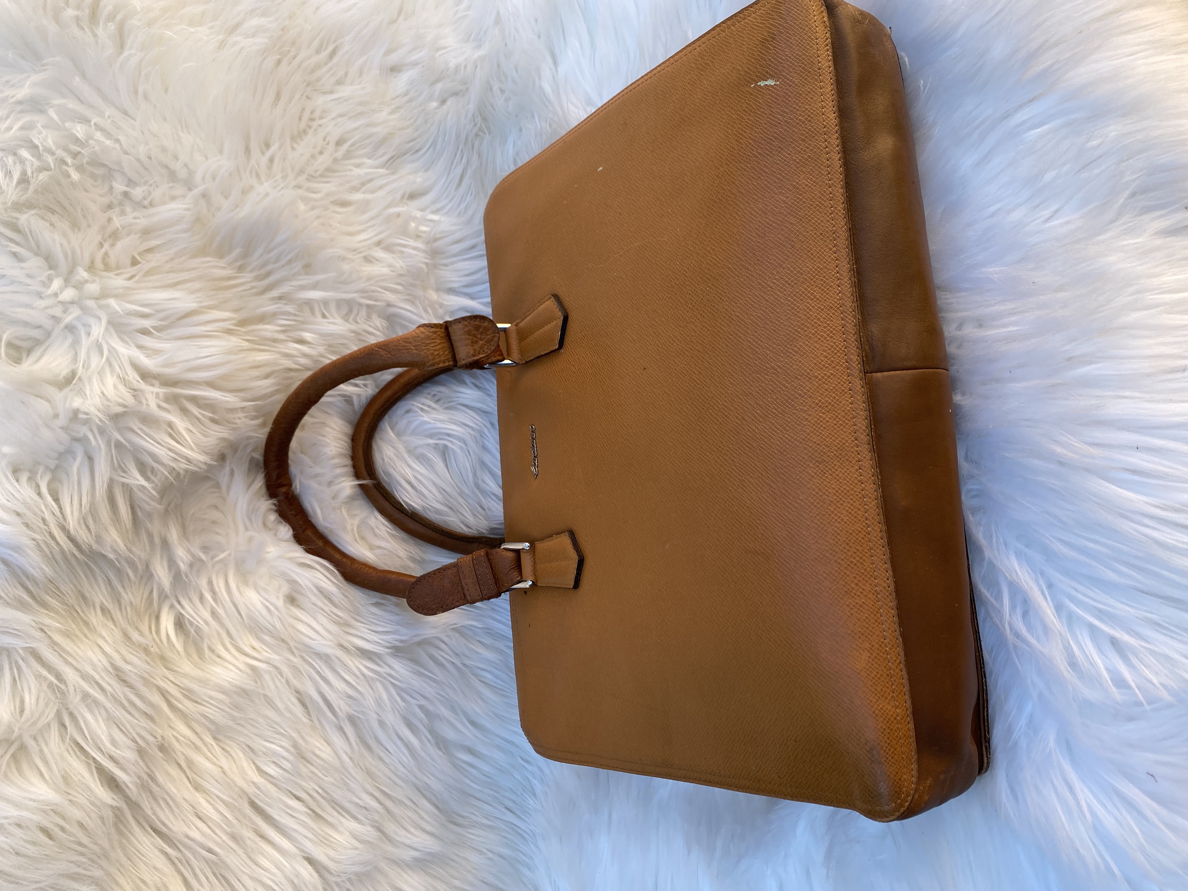 Genuine leather men’s laptop bag. Minor scratches visible but good condition. Mustard colour. L39cm..H30cm..W10cm.